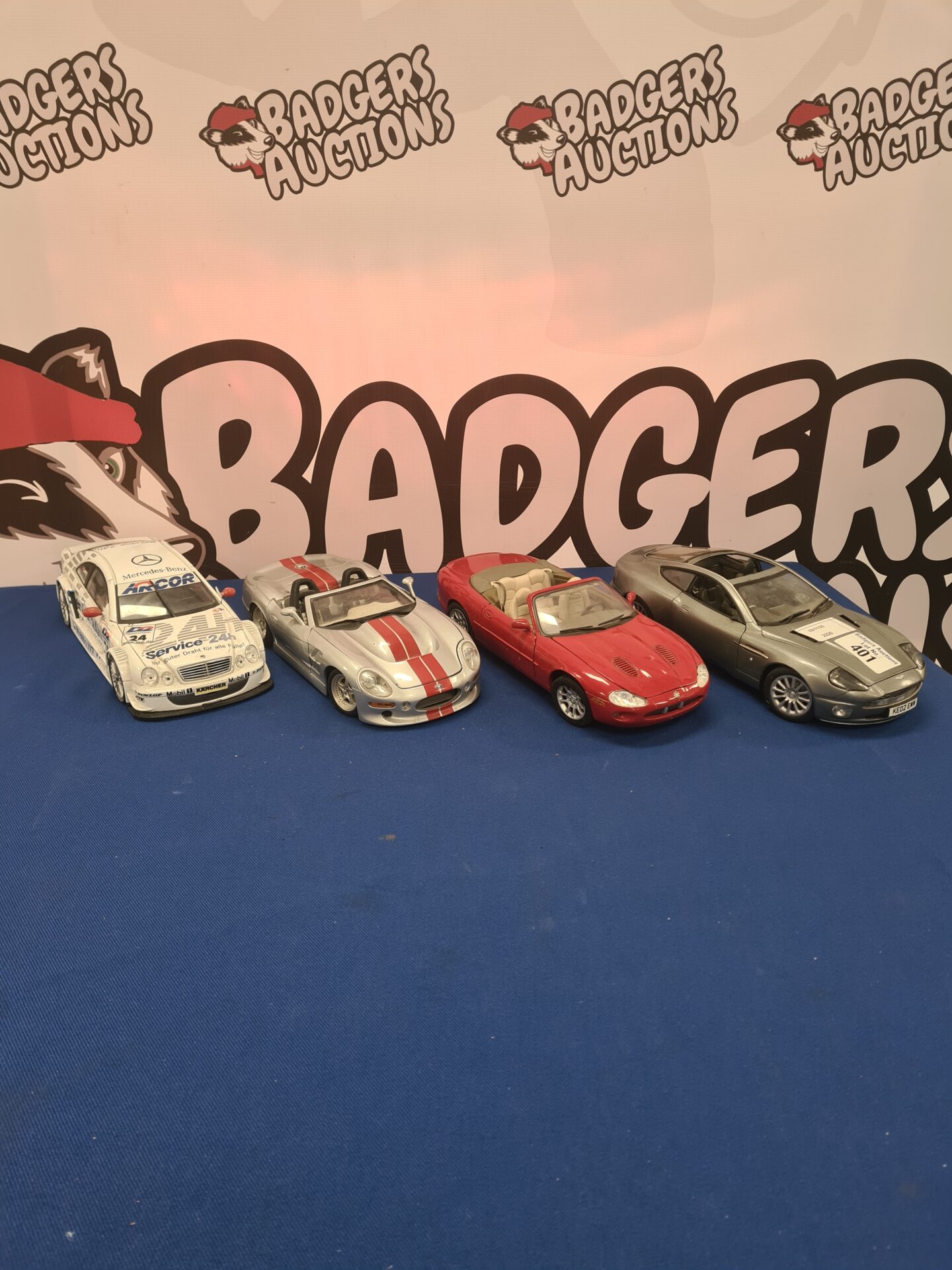This lot features a selection of diecast model cars, including examples from Maisto. The models represent a variety of styles and colours, offering a diverse collection for enthusiasts. These miniature vehicles are detailed representations of real-world cars, perfect for display or collection.