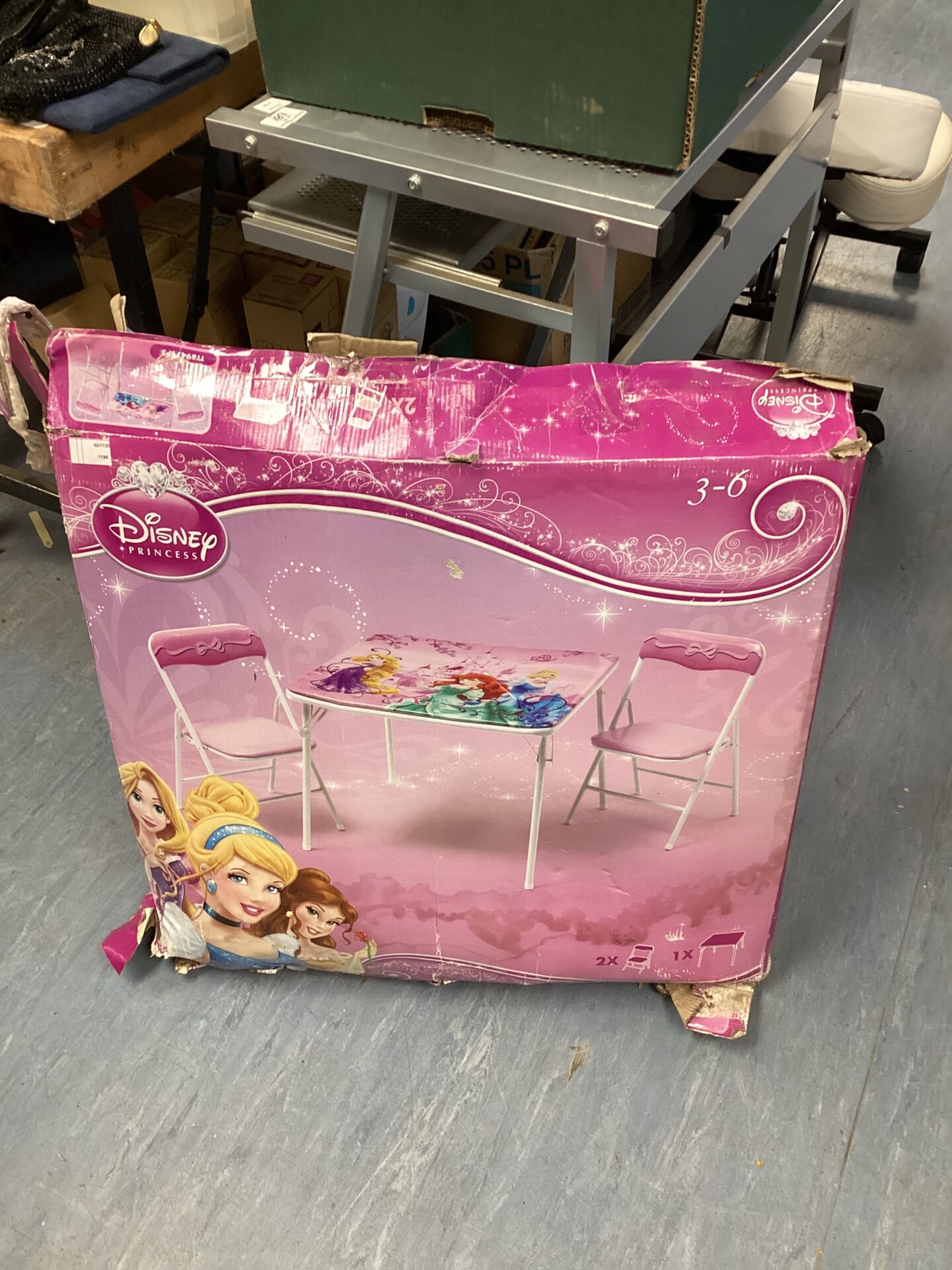 This set appears to be pre-owned and may exhibit signs of wear consistent with use. While the set is visually appealing, a thorough inspection is recommended to assess its structural integrity and overall condition. This Disney Princess table and chair set would be a delightful addition to a child’s room or a collector of Disney memorabilia.