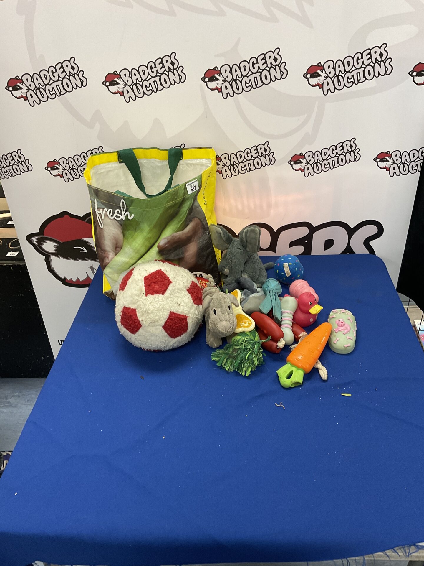 This lot of dog toys shows signs of use, with some wear and tear consistent with normal play. While not pristine, the toys remain functional and appealing for a dog who enjoys a good chew or cuddle. This lot would be ideal for a pet owner looking for an affordable way to refresh their dog’s toy collection or for someone who enjoys collecting pet-related items.