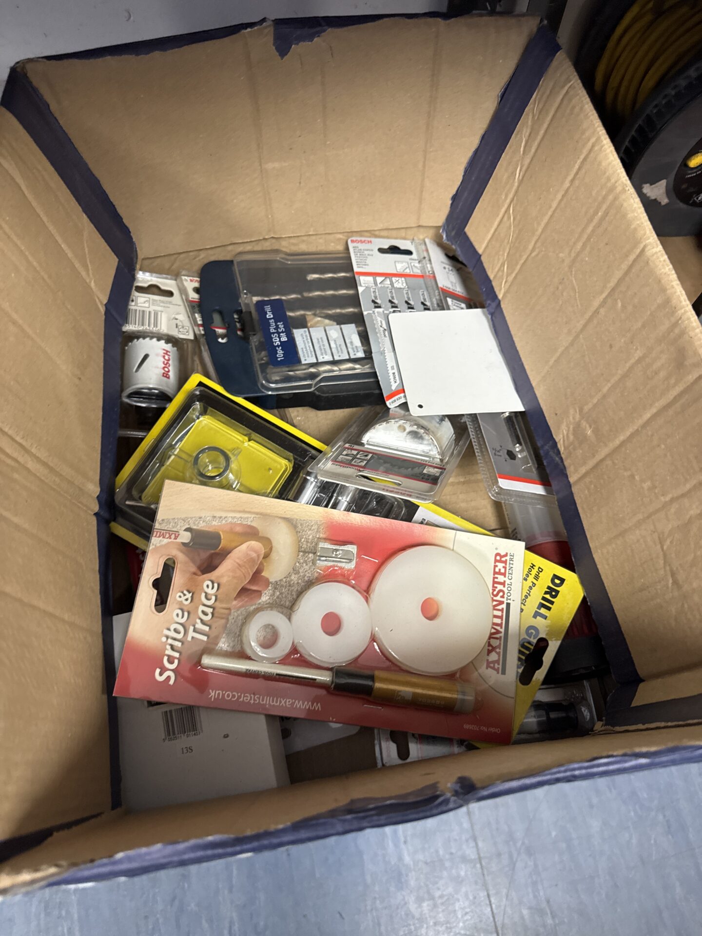 This lot contains a selection of drill bits and other tools, presented in original packaging. The packaging indicates a variety of bit sizes and types, likely including those suitable for wood, metal, and masonry. The set appears to be a comprehensive collection for general DIY and workshop use, offering versatility for a range of projects.