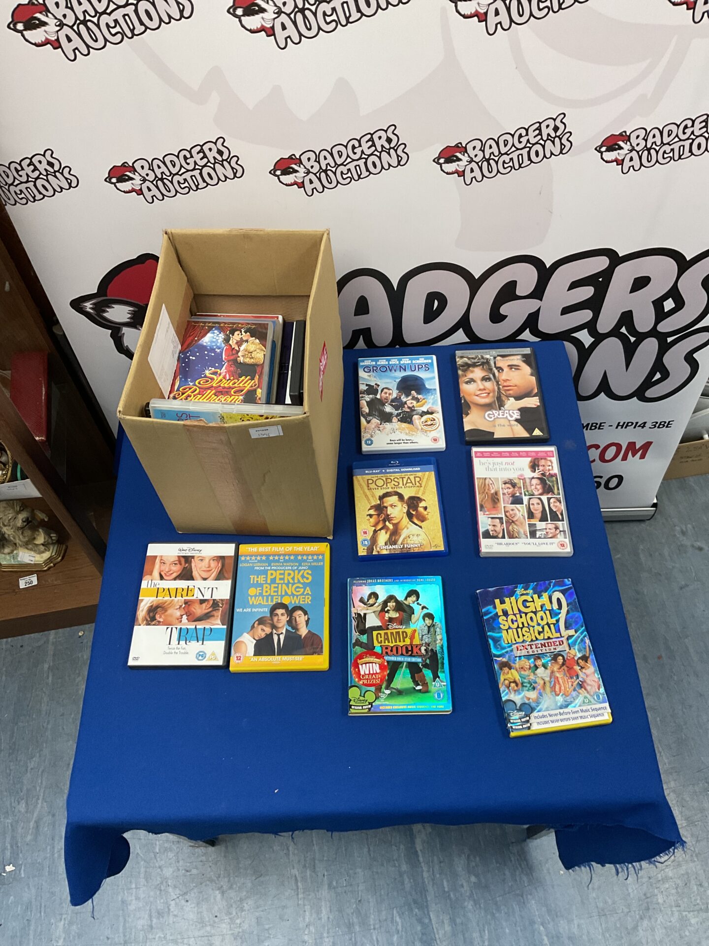 The condition of the DVDs is not assessed. This lot may appeal to collectors of physical media or those looking to expand their home movie library. The variety of titles within the box offers potential for discovering new favourites or revisiting classic films.