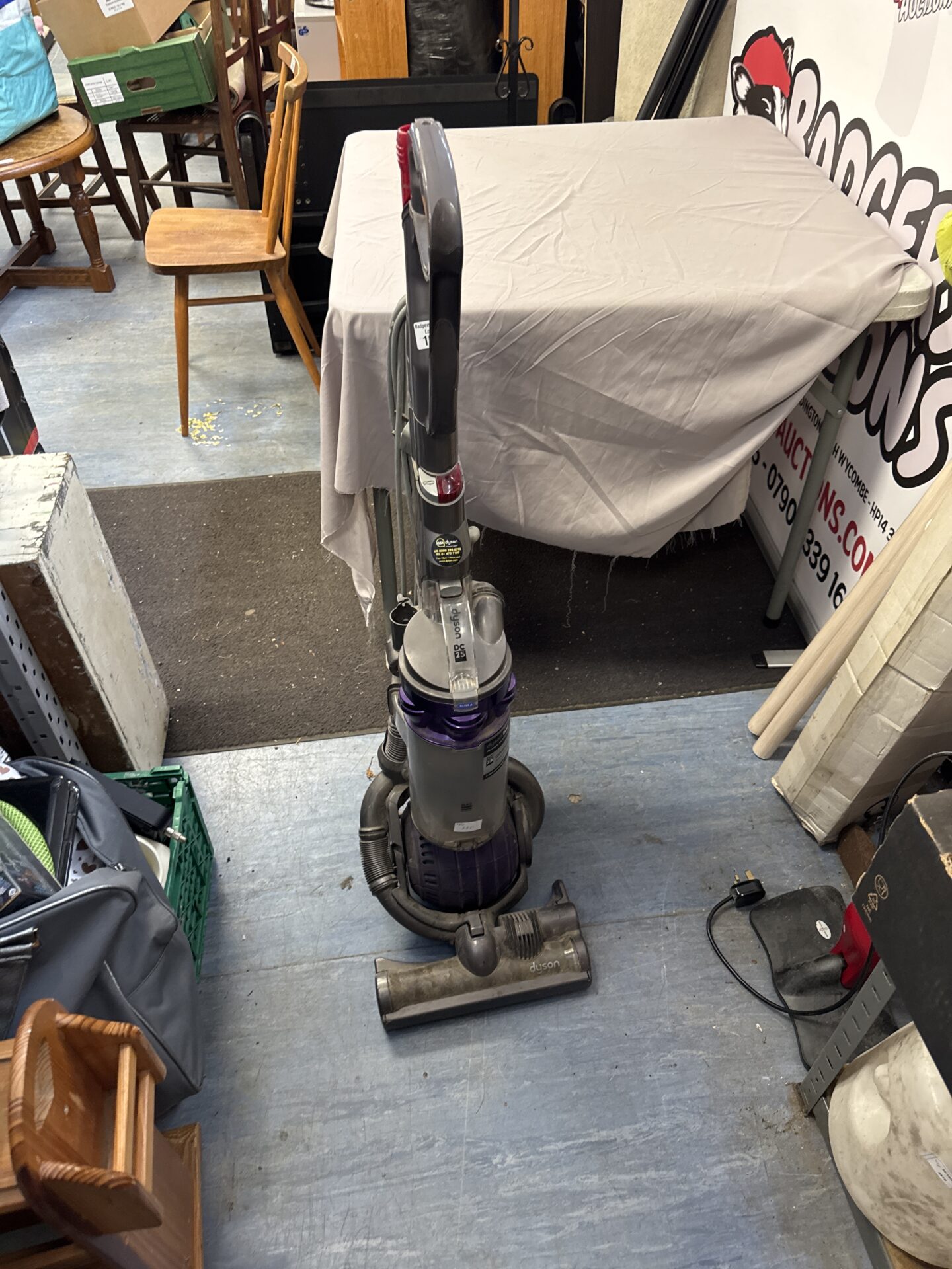 This is a Dyson DC25 ball upright hoover, a popular model known for its powerful suction and innovative ball technology. The DC25 features root cyclone technology, designed to capture even microscopic dust and allergens. Its ball technology allows for easy manoeuvrability around furniture and tight spaces, making it a practical choice for domestic cleaning.