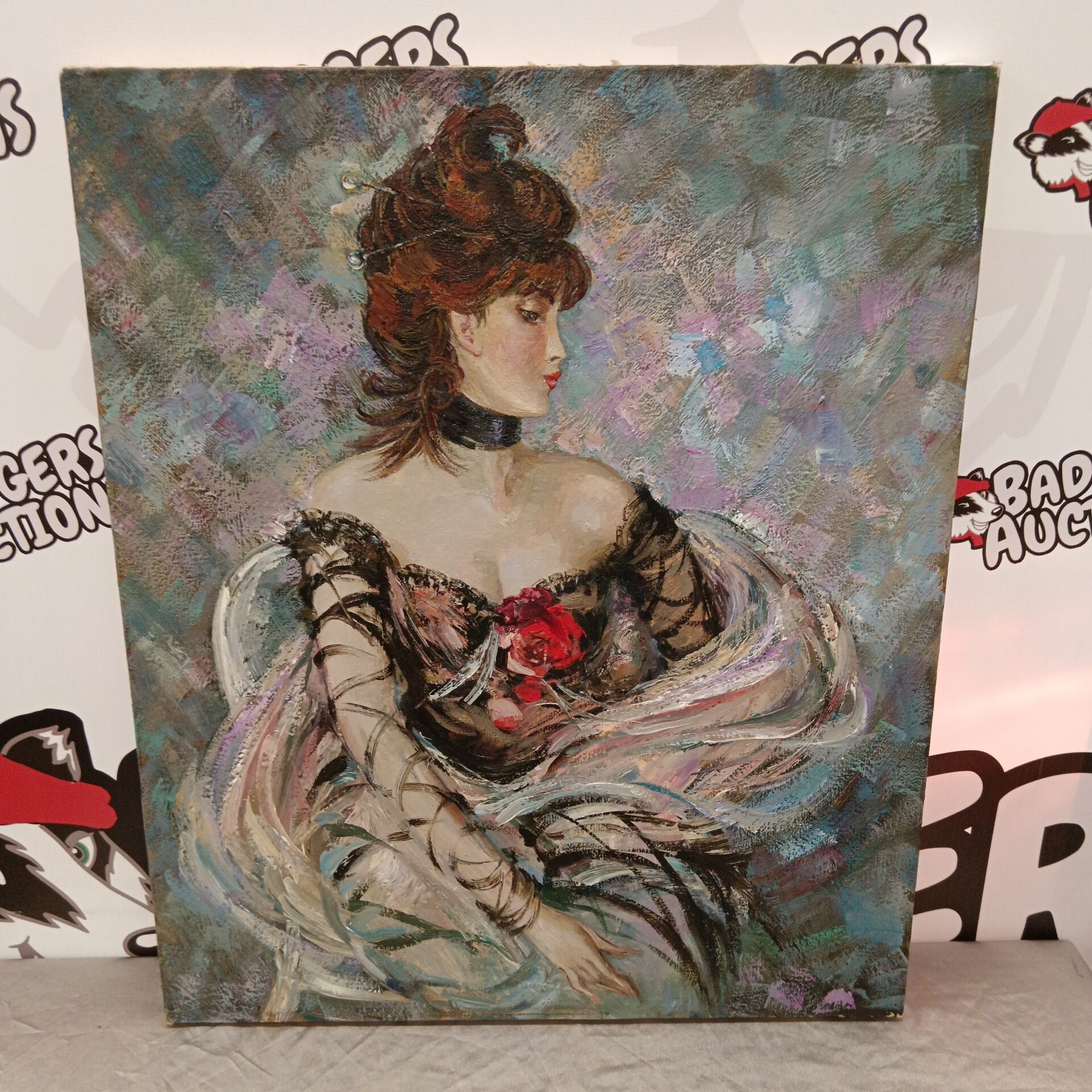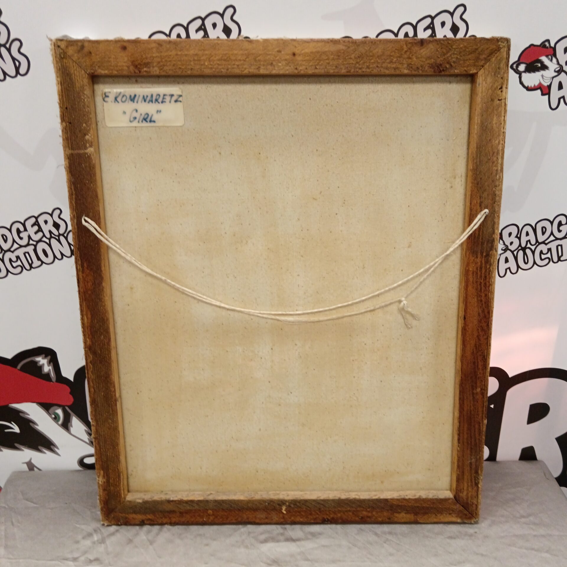 The painting appears to be in vintage condition, with signs of age consistent with its likely period of creation. While there may be minor imperfections or wear, these contribute to the artwork’s character and authenticity. This piece would be of interest to collectors of vintage portraiture, figurative art, or works by E Kominaretz, offering a unique addition to any art collection or home decor.
