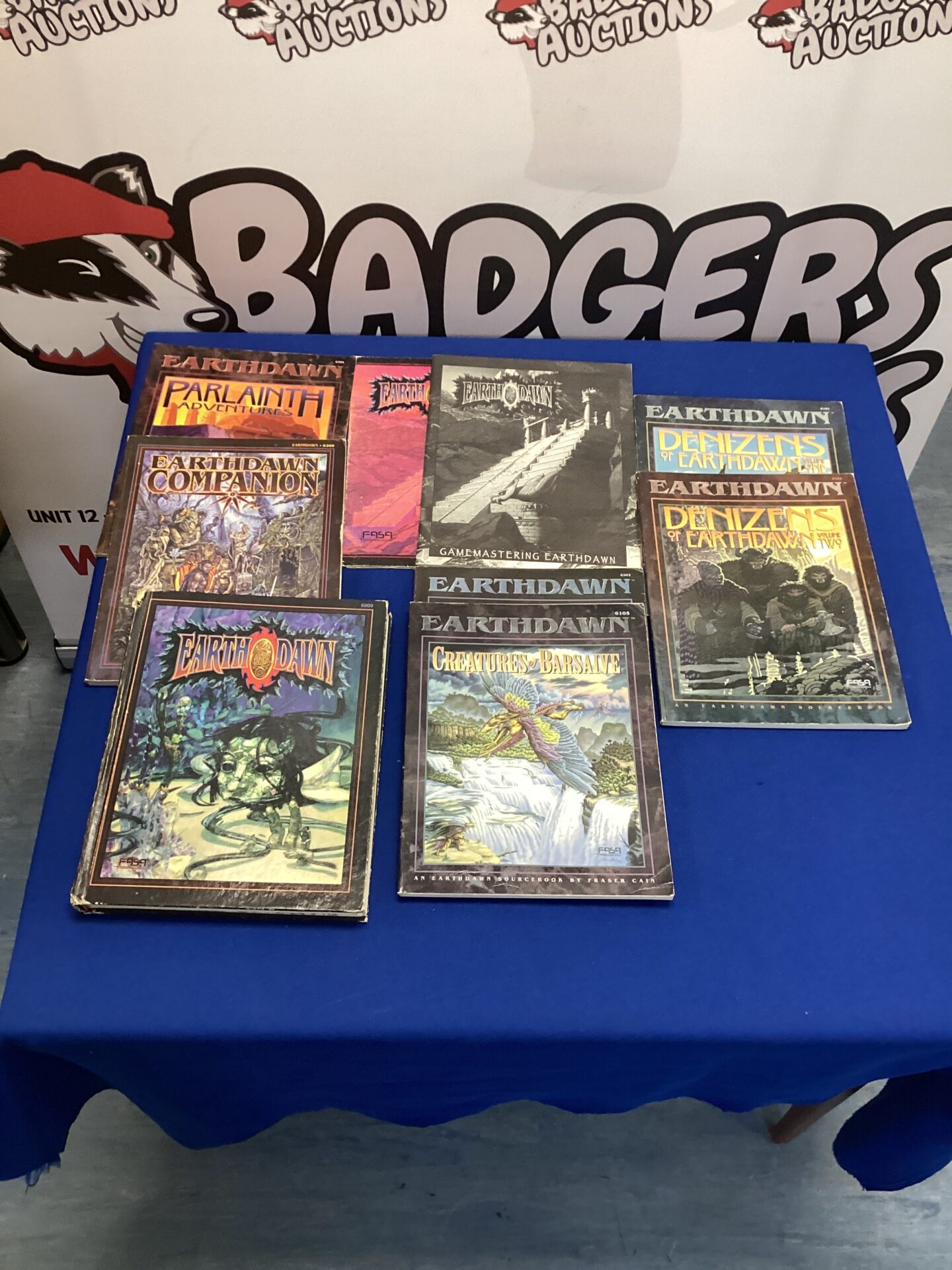 This is a collection of Earthdawn roleplaying game books, offering a deep dive into the richly detailed fantasy world of Barsaive. These books contain rules, lore, character creation options, and adventure ideas for players and gamemasters alike. The collection appears to include core rulebooks and potentially supplemental source material, providing a comprehensive experience for those interested in this classic RPG.