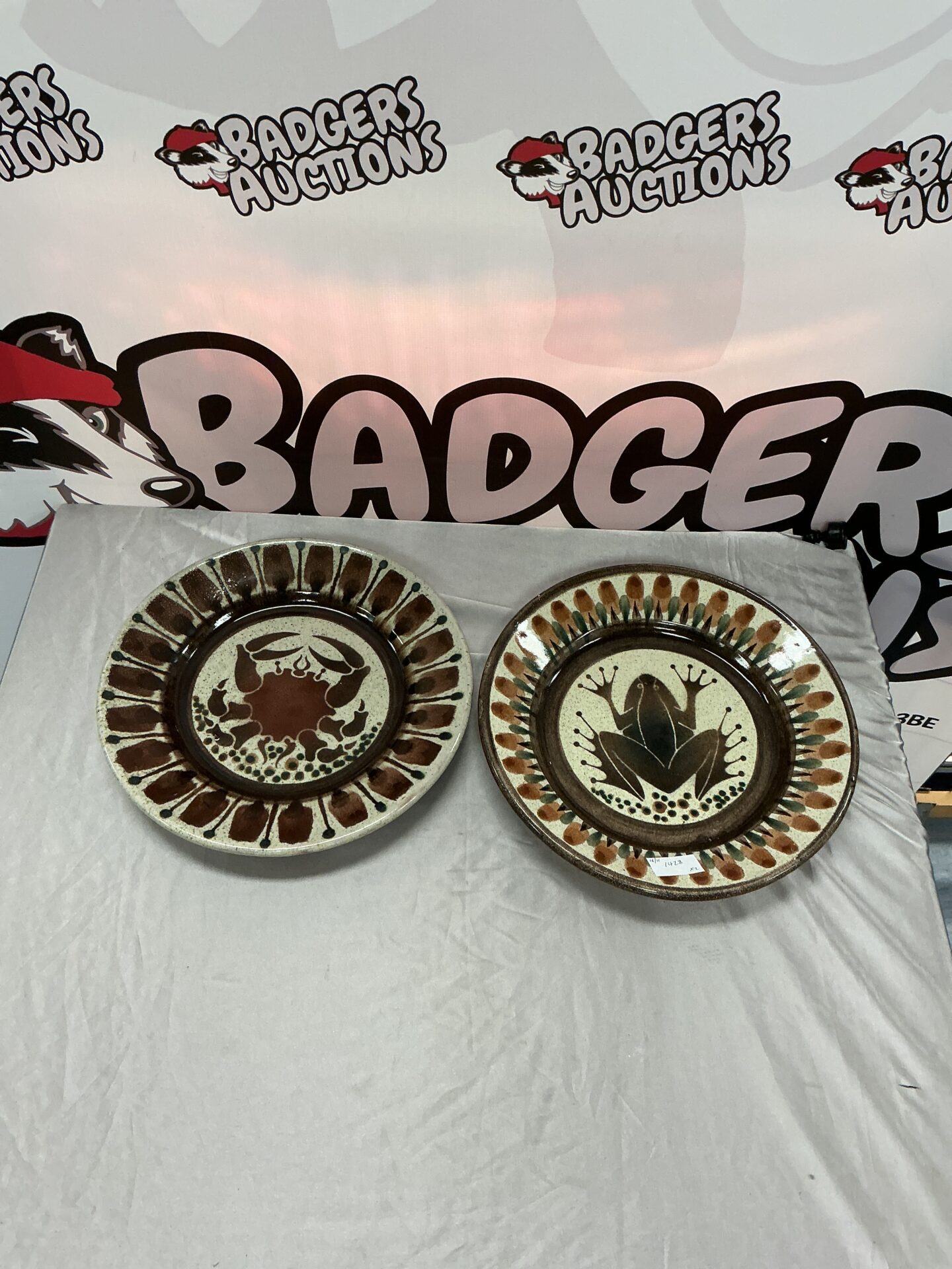 Both plates exhibit signs of age and wear consistent with their vintage nature. There are minor imperfections in the glaze and some surface scratches, which contribute to their character and authenticity. These plates are desirable for collectors of decorative ceramics and those seeking unique pieces to enhance their home décor. The plates are offered as viewed, with all faults.