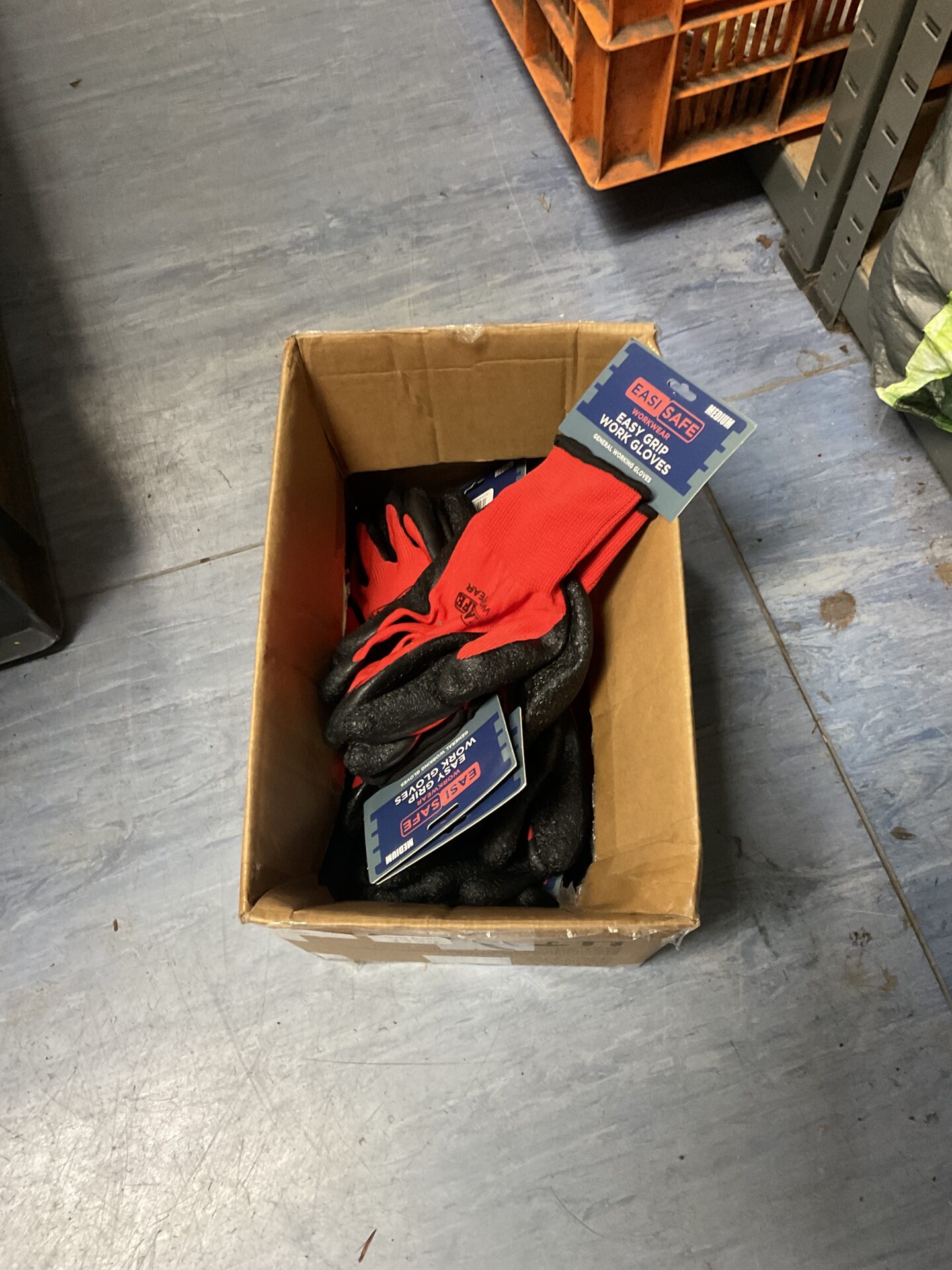 This lot contains a box of Easisafe work gloves, designed for general industrial and construction use. These gloves appear to be size M, offering a balance of dexterity and protection. They are intended to shield hands from abrasions, cuts, and other workplace hazards.