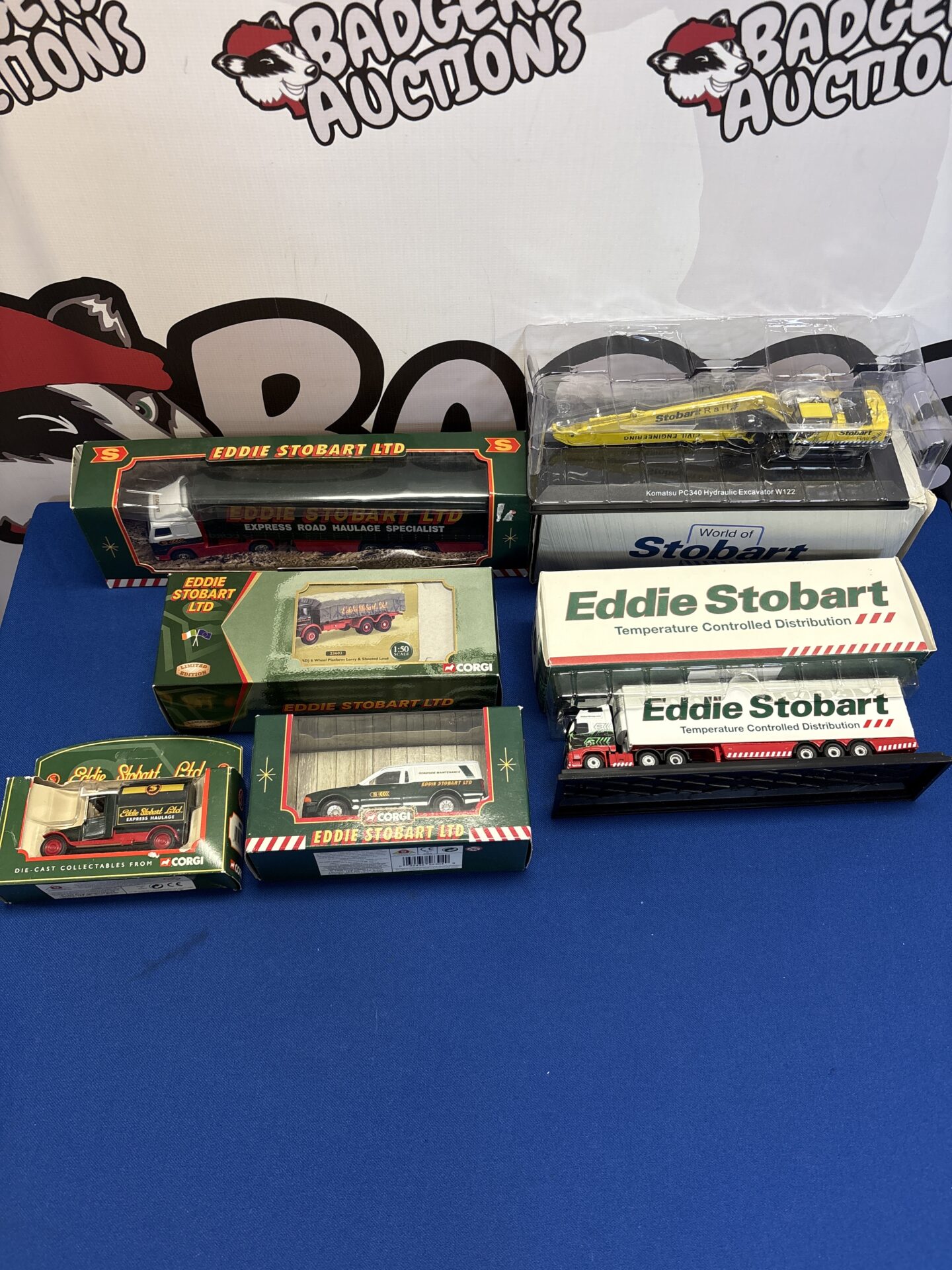 This lot comprises a selection of boxed Eddie Stobart diecast models, primarily from Corgi. The models represent a variety of Eddie Stobart vehicles, showcasing the iconic livery of this well-known transport company. These detailed replicas are aimed at collectors and enthusiasts of commercial vehicles and transport memorabilia.