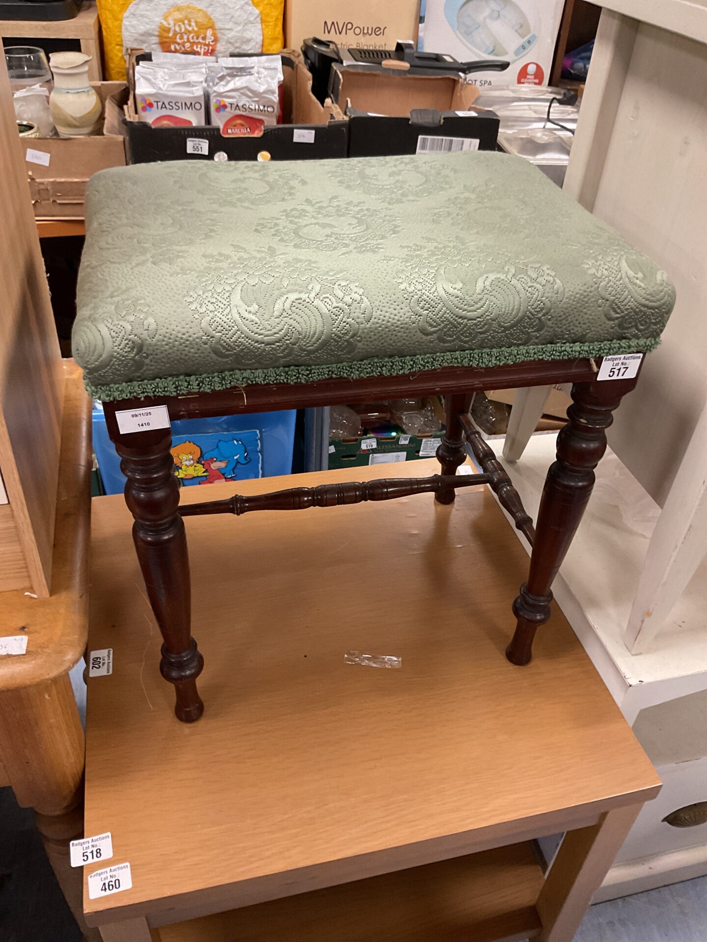 517 Edwardian Mahogany Upholstered Piano Stool
