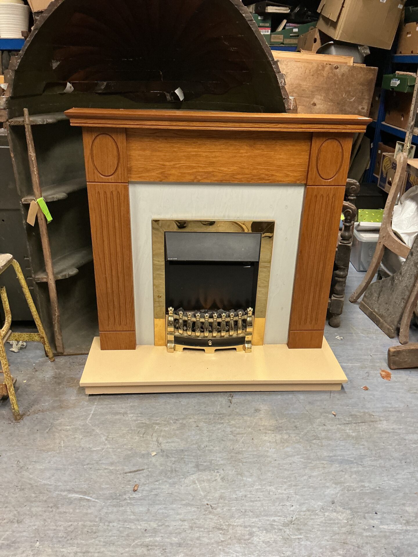 This fireplace suite is offered for restoration or use as a project. It shows signs of wear consistent with age and previous use, and may require cleaning, repair, or re-wiring. It may appeal to collectors of vintage fireplaces or those looking for a unique piece to restore and incorporate into their home.