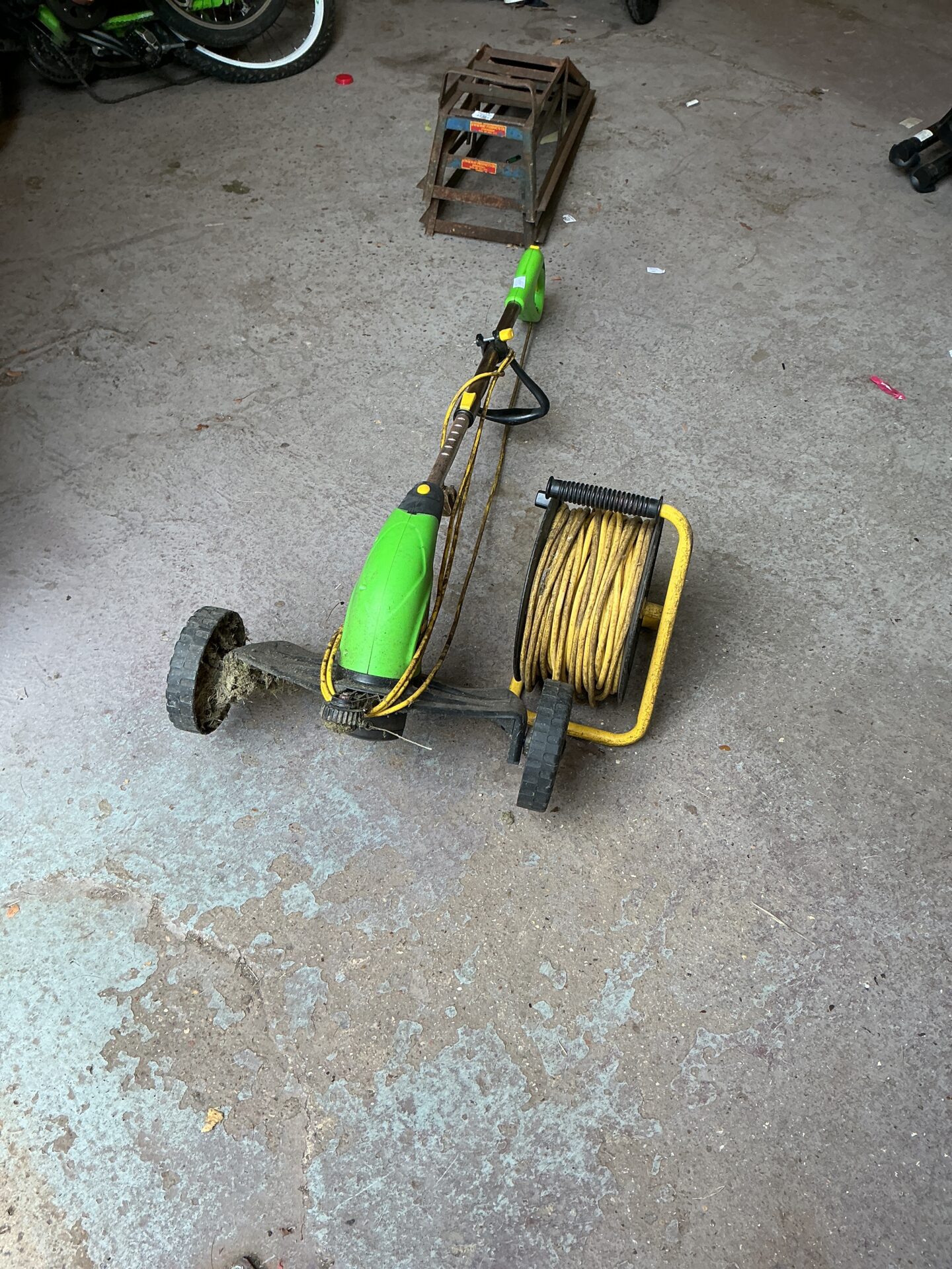 This strimmer appears to be in used condition, showing signs of wear consistent with outdoor use. While it may have some cosmetic imperfections, it is likely to be fully functional. It would be ideal for someone needing an affordable garden tool or a collector of vintage garden equipment.