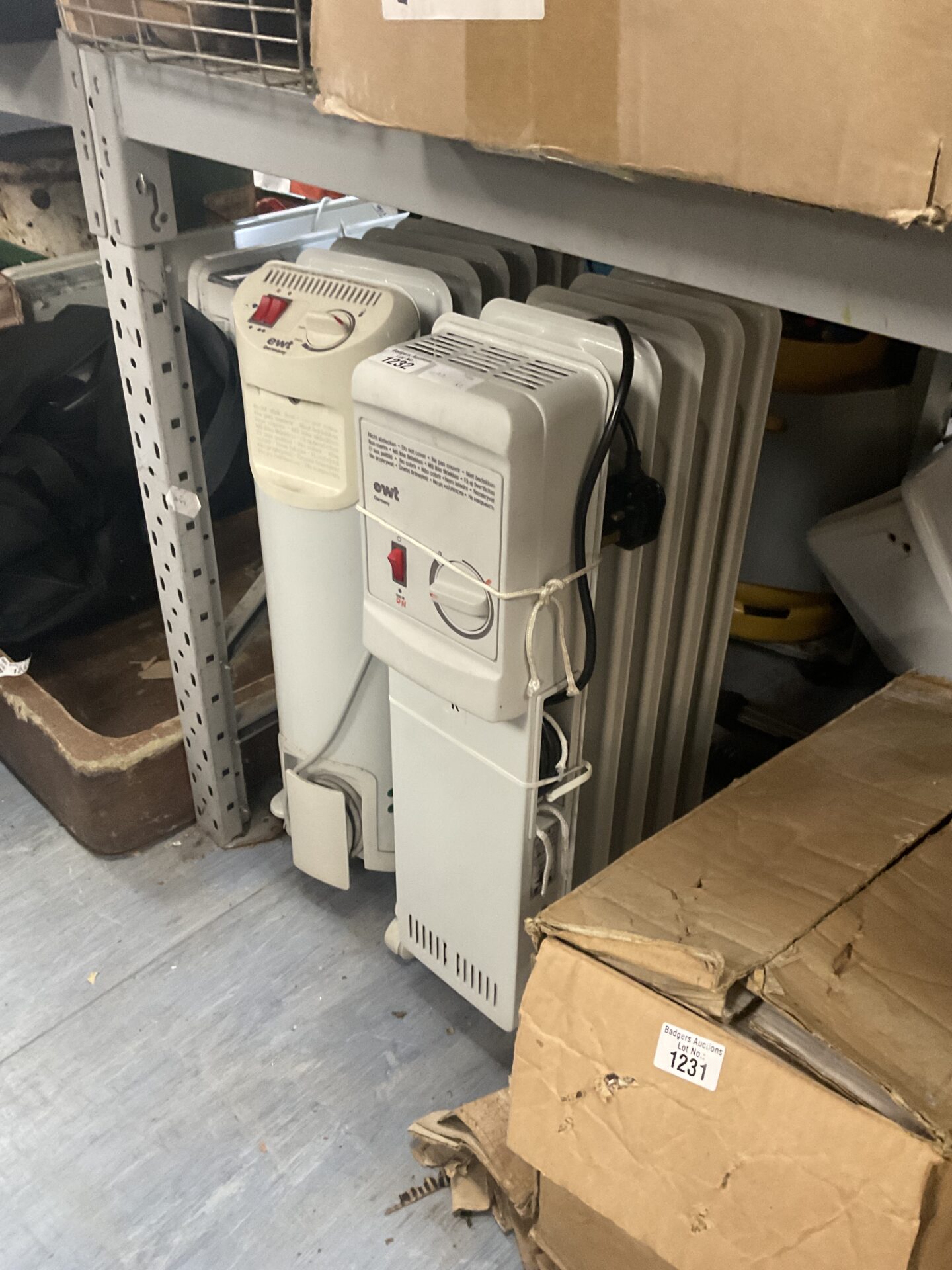 This lot comprises two ewt electric heaters. These portable heaters feature a fan-forced design, intended to provide localised warmth. The heaters are constructed from plastic casings and have simple controls for operation.