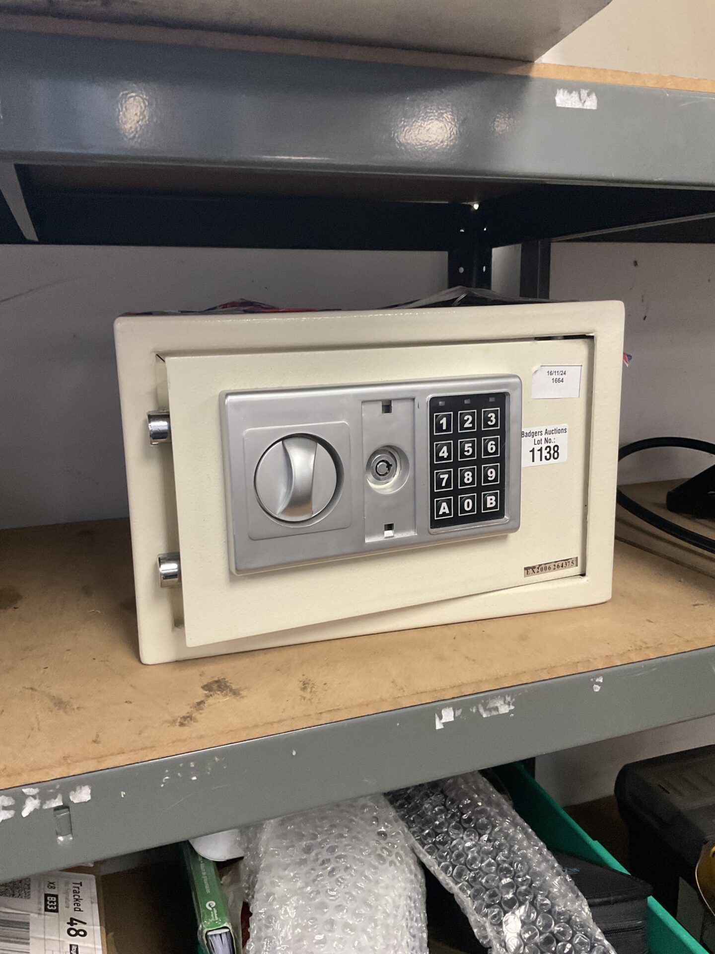 This is an electric personal safe, designed for securing valuables at home. The safe features a key lock mechanism and a numeric keypad for access. Its compact size makes it suitable for placement in various locations, offering a discreet security solution.