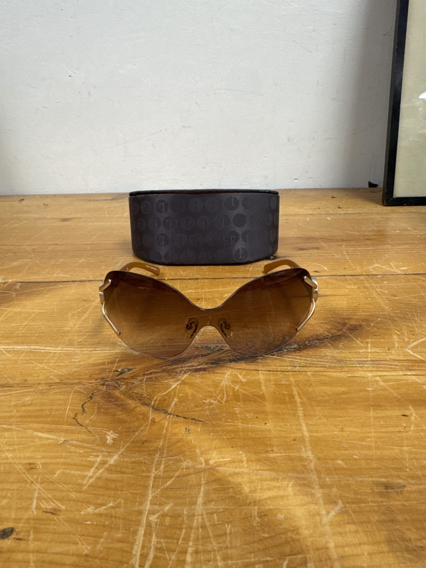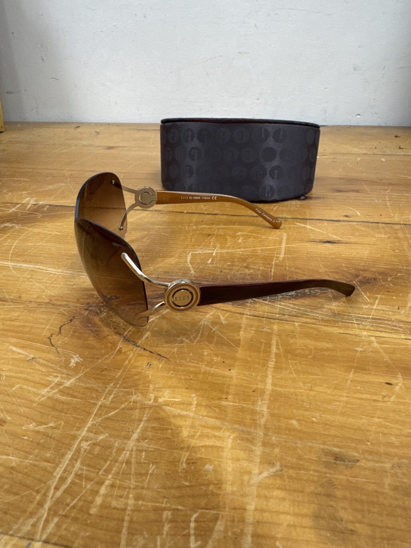 These Elle sunglasses are in good vintage condition, showing minimal signs of wear consistent with age. They come complete with their original magnetic closure case, adding to their collectibility and value. A fantastic find for vintage fashion enthusiasts or collectors of designer eyewear, these sunglasses are sure to turn heads.