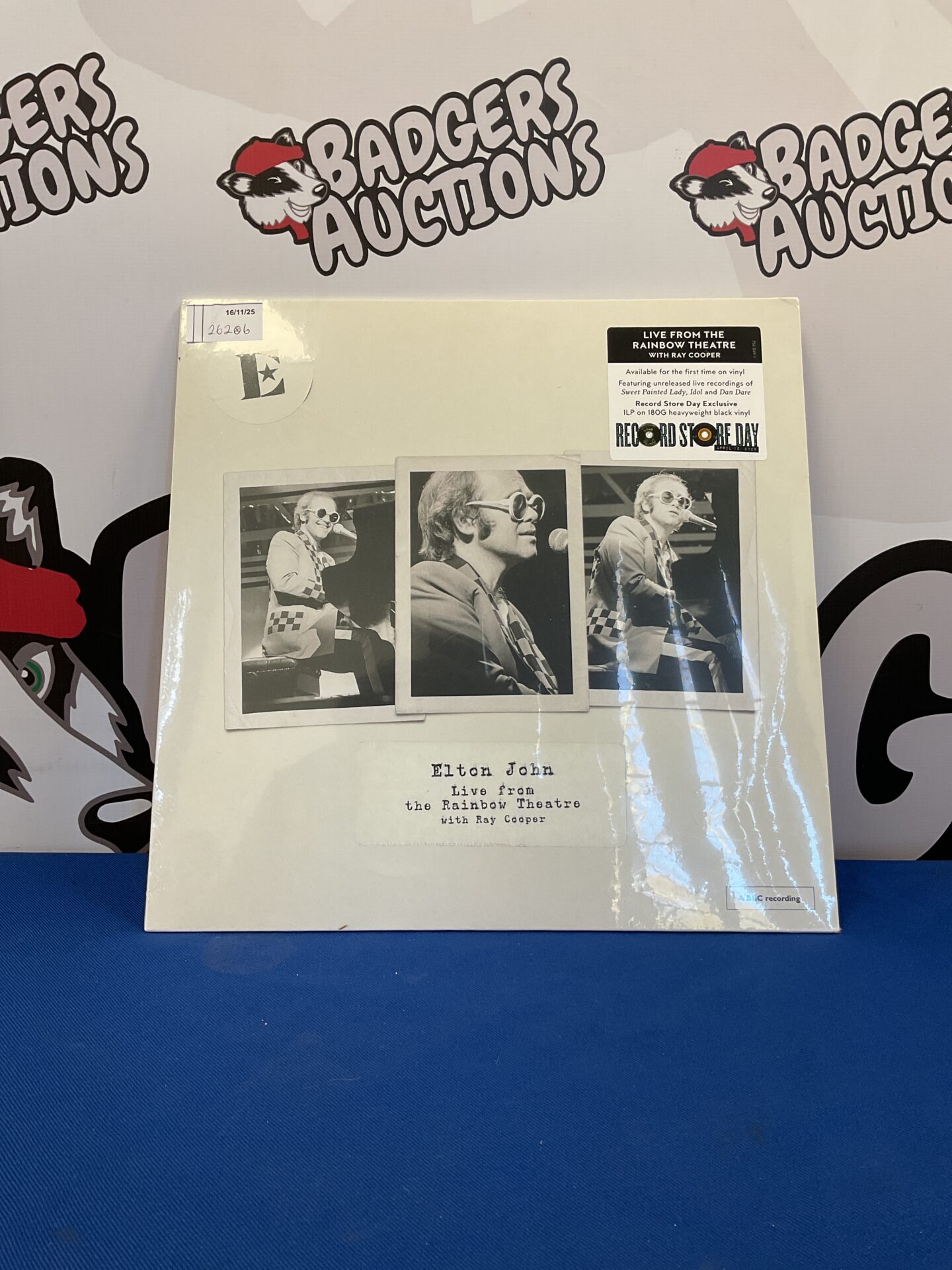 This is a 12” vinyl record featuring Elton John performing live at the Rainbow Theatre with Ray Cooper. The record captures a dynamic performance from a pivotal moment in Elton John’s career, showcasing his musical talent and stage presence. This record is a piece of music history, offering a glimpse into a legendary concert experience.