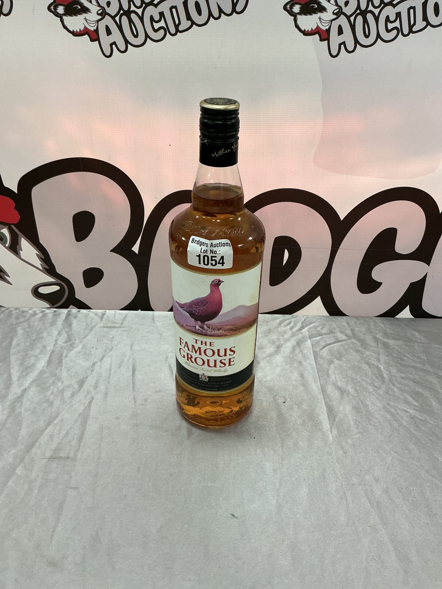 This is a 1ltr bottle of Famous Grouse Whisky, a well-known blended Scotch. The bottle features the iconic grouse emblem and is presented for consideration by collectors or those interested in vintage spirits. Please review the images carefully to assess the condition before placing a bid.