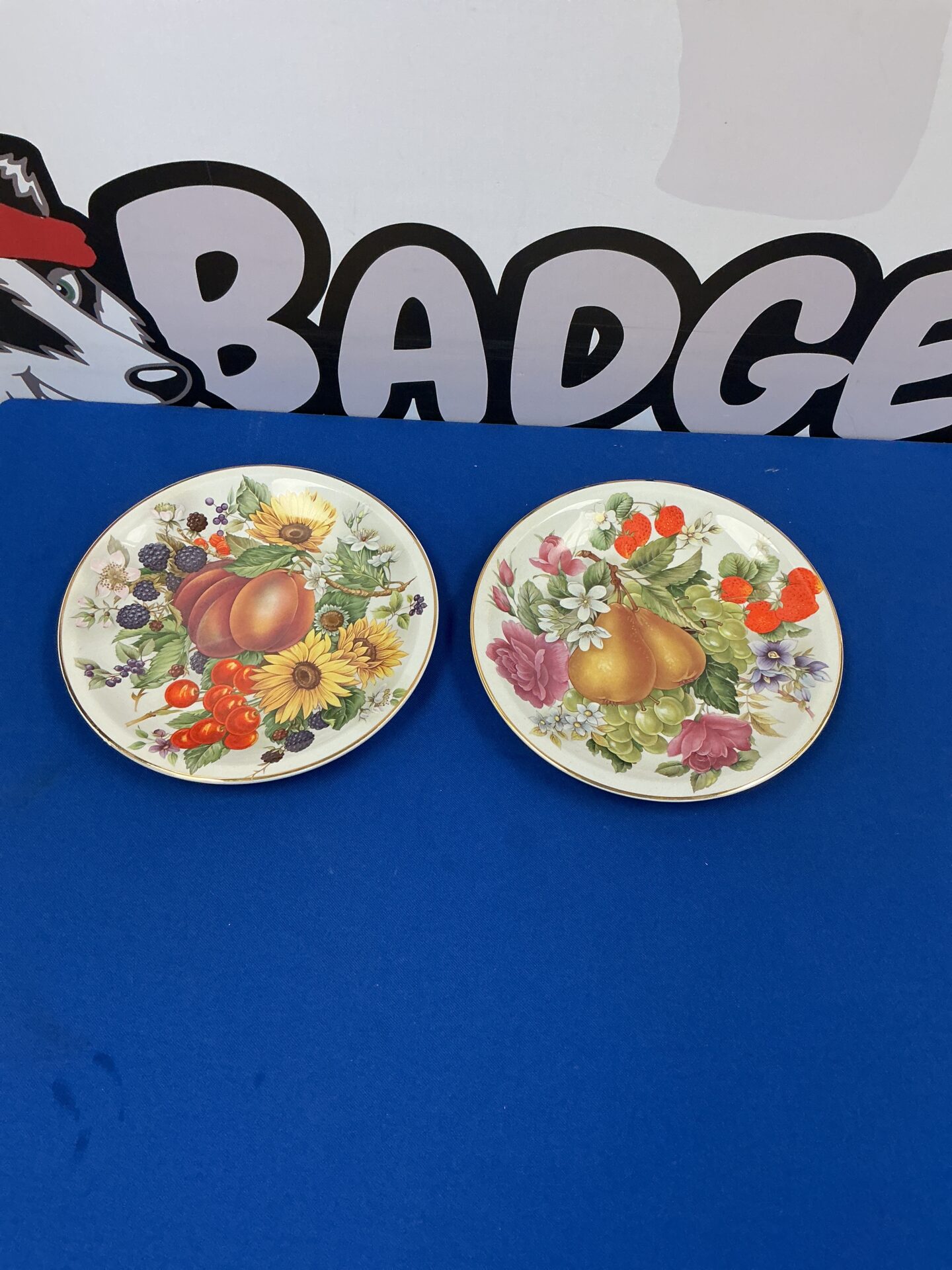 A pair of vintage Fenton China collectors plates from Staffordshire, England. These decorative plates feature vibrant floral and fruit designs, perfect for display or adding to a china collection. In excellent vintage condition, they offer a touch of elegance and charm.