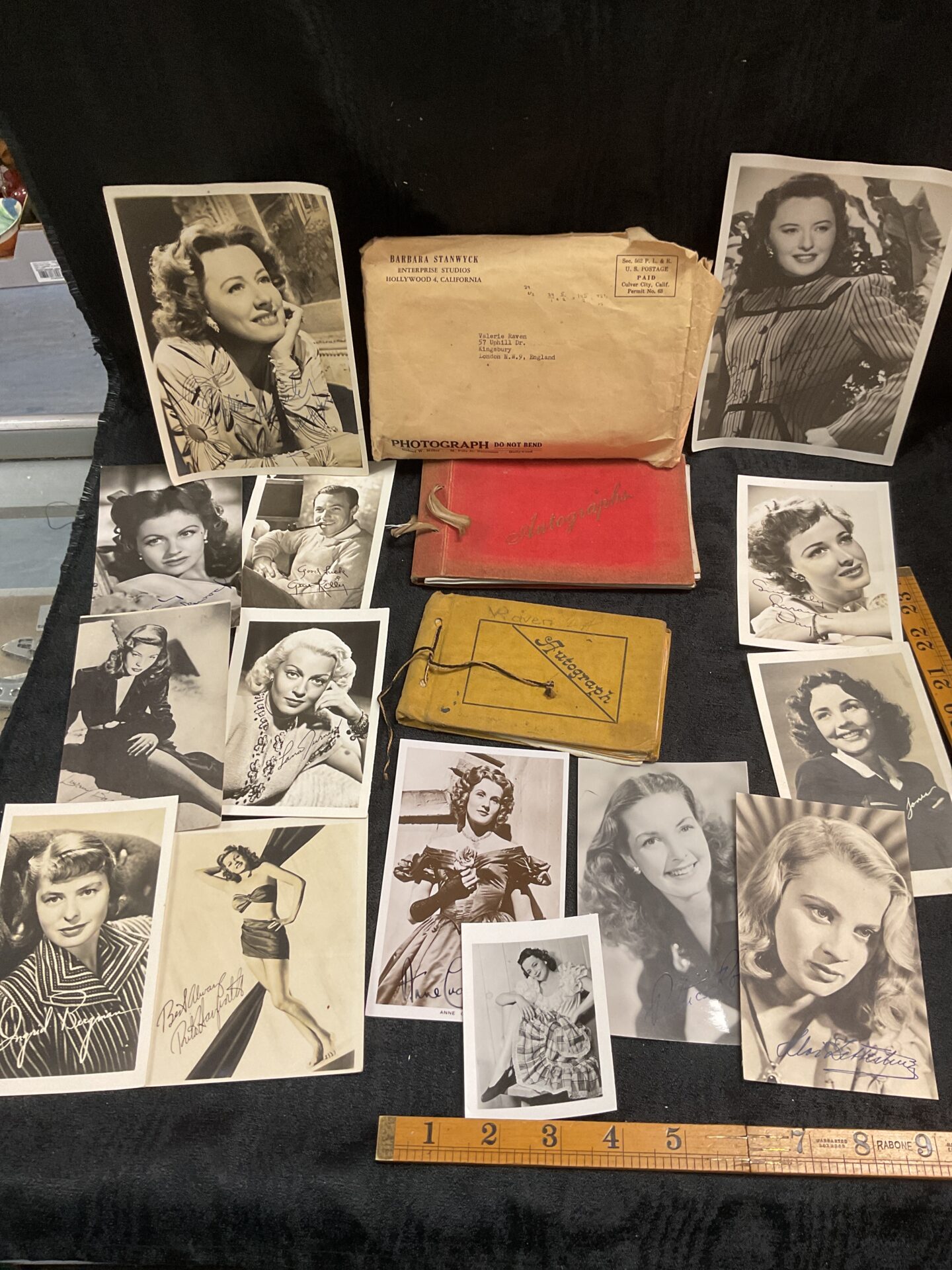 The photographs and autograph books exhibit signs of age and handling, consistent with their vintage. While some photographs may display minor creases or edge wear, the signatures remain largely legible. This collection represents a unique opportunity for collectors of Hollywood memorabilia, offering a tangible connection to the stars of a bygone era and a fascinating insight into the culture of autograph collecting.