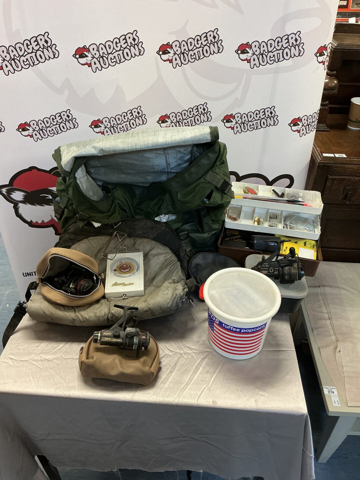 This lot comprises a collection of fishing tackle, including a Daiwa reel and several bait boxes. The reel appears to be a traditional style, suitable for various fishing applications. The bait boxes offer storage for hooks, weights, lures, and other essential angling accessories, providing a convenient solution for keeping tackle organised during fishing trips.