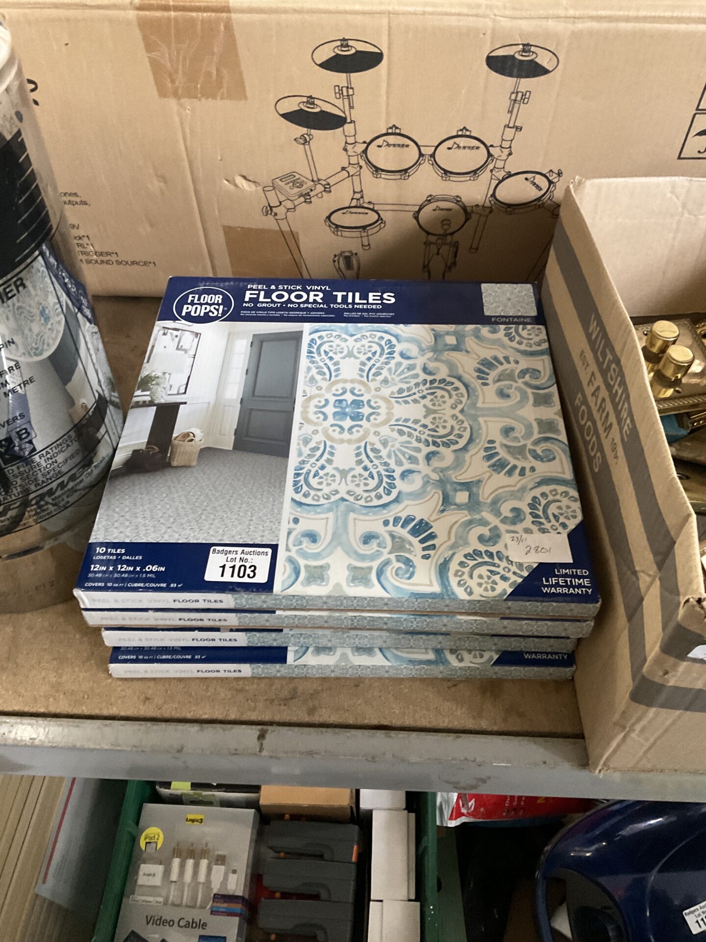 This lot comprises five unopened packs of Floor Pops stick-on vinyl floor tiles, each containing ten tiles measuring 12”x12”x0.6mm. These tiles offer a convenient and straightforward solution for updating flooring without the need for grout or specialized tools. The Floor Pops system is designed for easy installation, making it a popular choice for DIY home improvement projects.