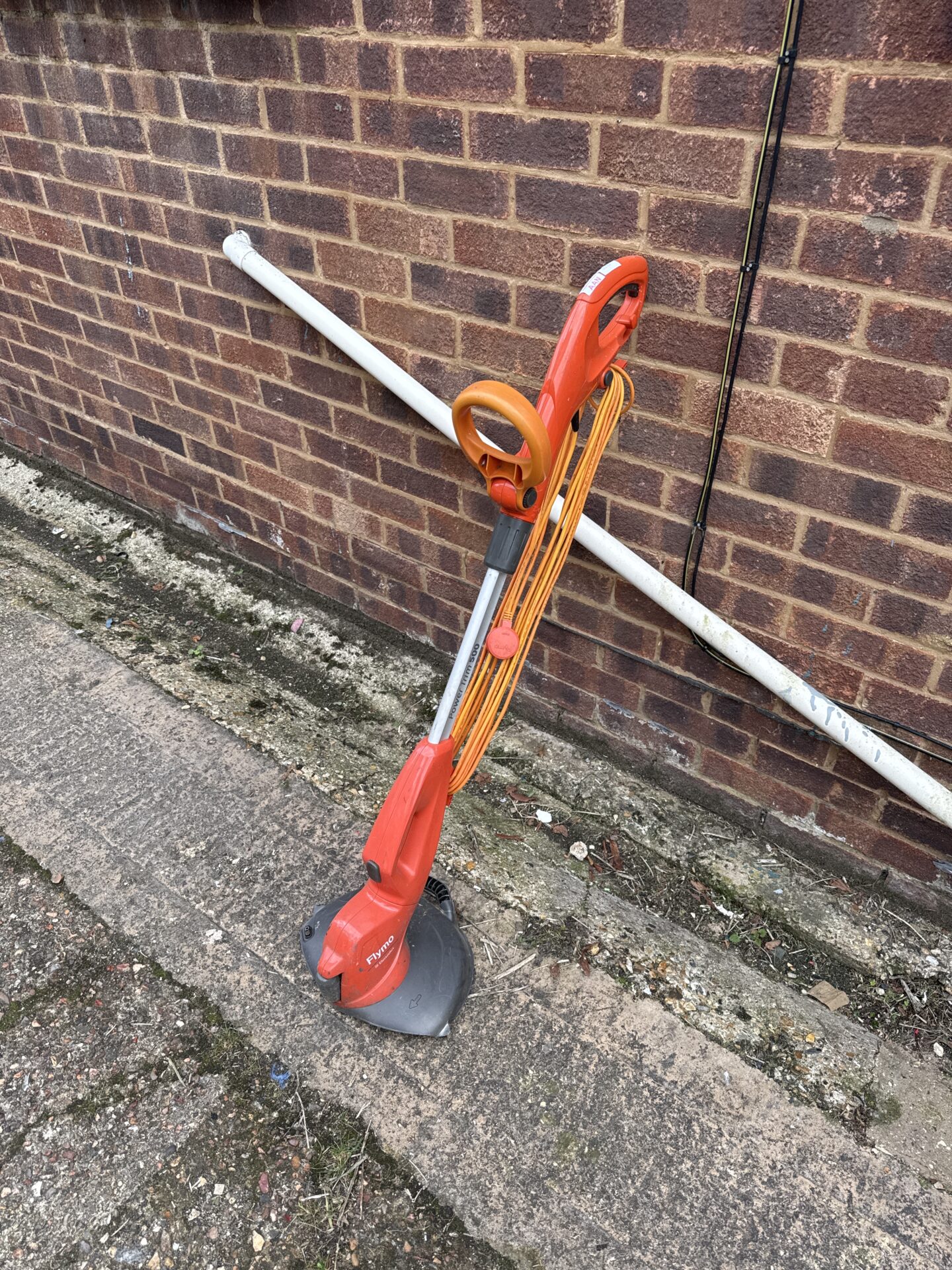 This Flymo Powertrim 500 exhibits signs consistent with use. Please examine the images carefully to assess its condition. It may be of interest to garden tool collectors, those seeking a spare strimmer for parts, or individuals looking for a project to restore a vintage garden tool.