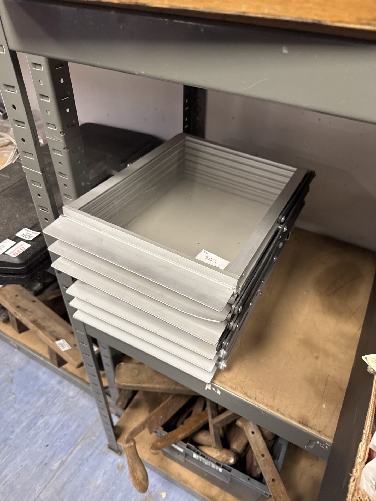 These leaflet stands appear to be in good used condition, with some minor signs of wear consistent with previous use. They are functional and structurally sound, ready to be used for display purposes. While not particularly rare, these stands represent a practical and functional item for businesses or individuals needing a portable display solution, and could be of interest to collectors of vintage point-of-sale items.