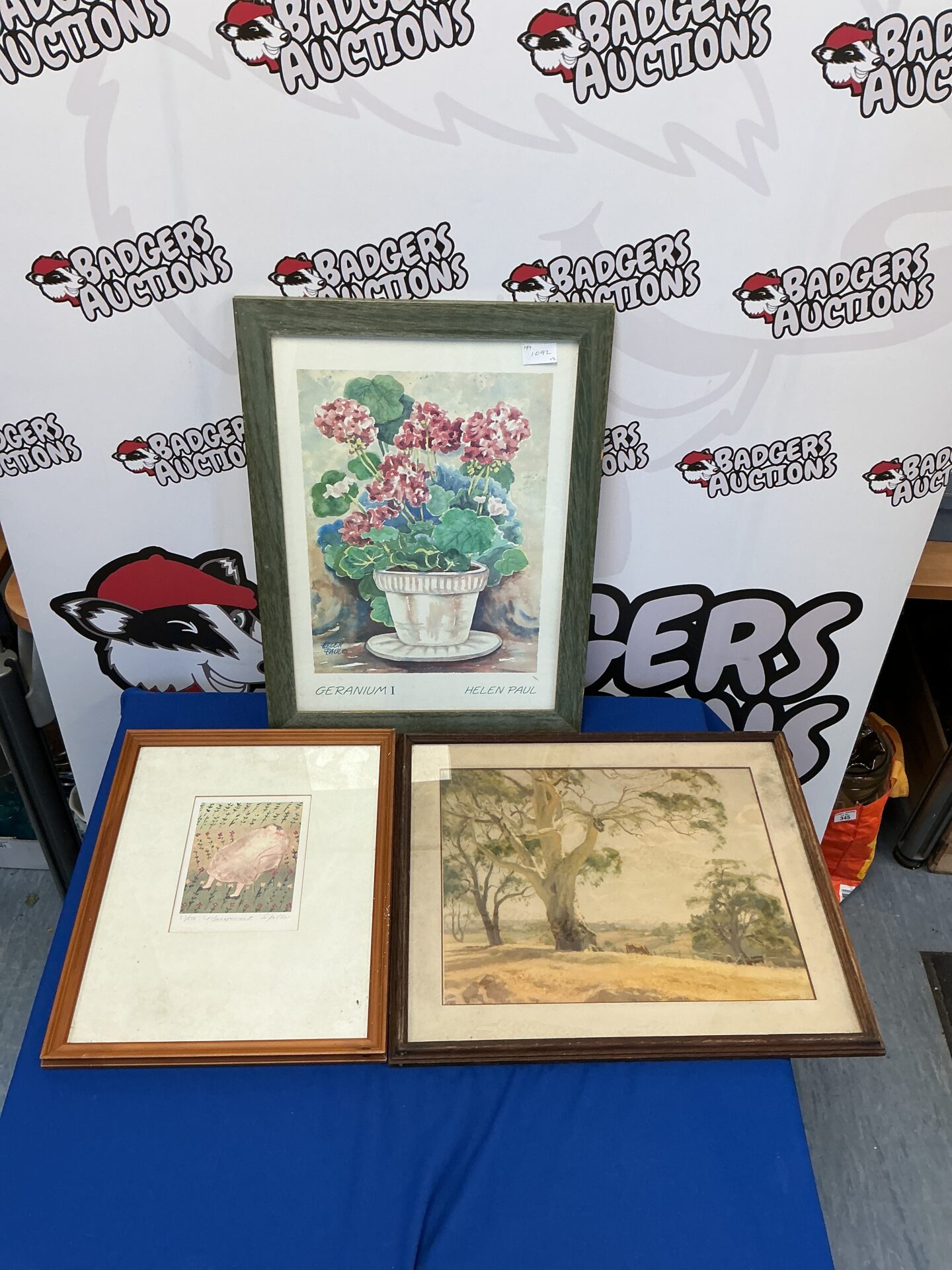 This lot features three framed botanical prints, including a lovely geranium study by Helen Paul. These vintage-style prints offer delicate floral detail and classic charm. Perfect for adding a touch of nature to any room, they are ideal for collectors and home decorators alike.