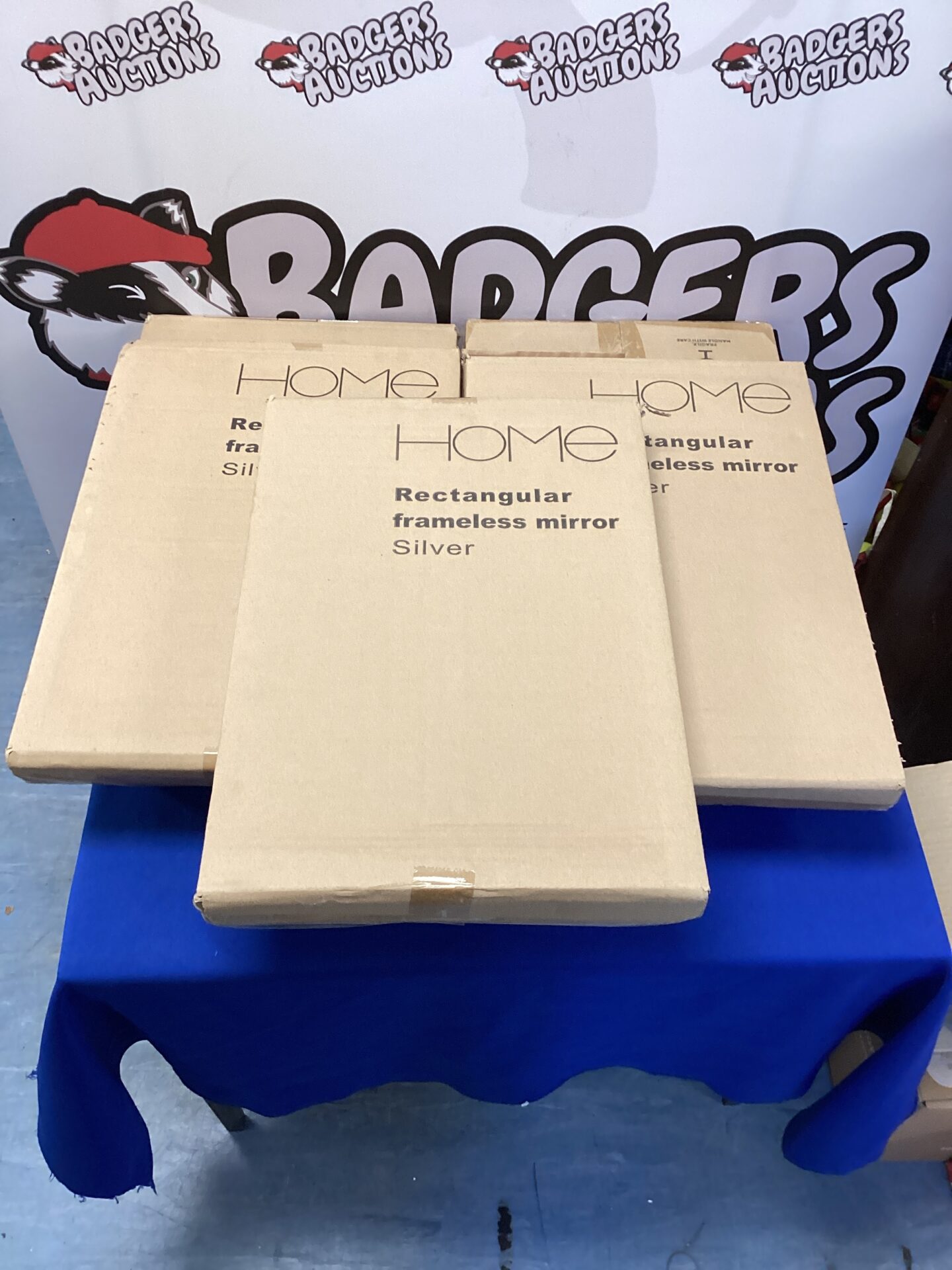 This lot consists of five rectangular frameless mirrors, offering a sleek and modern aesthetic. These mirrors are designed to be versatile, suitable for various spaces within the home, such as bathrooms, bedrooms, or hallways. The absence of a frame provides a clean, minimalist look that complements contemporary interior design styles.
