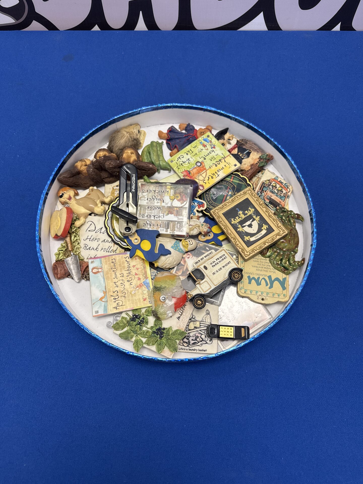 This lot comprises a diverse assortment of fridge magnets, offering a colourful and eclectic mix of designs. The magnets feature a variety of themes, including travel destinations, cartoon characters, and decorative patterns. They appear to be constructed from a range of materials, including plastic, resin, and metal, suggesting a collection accumulated over time.