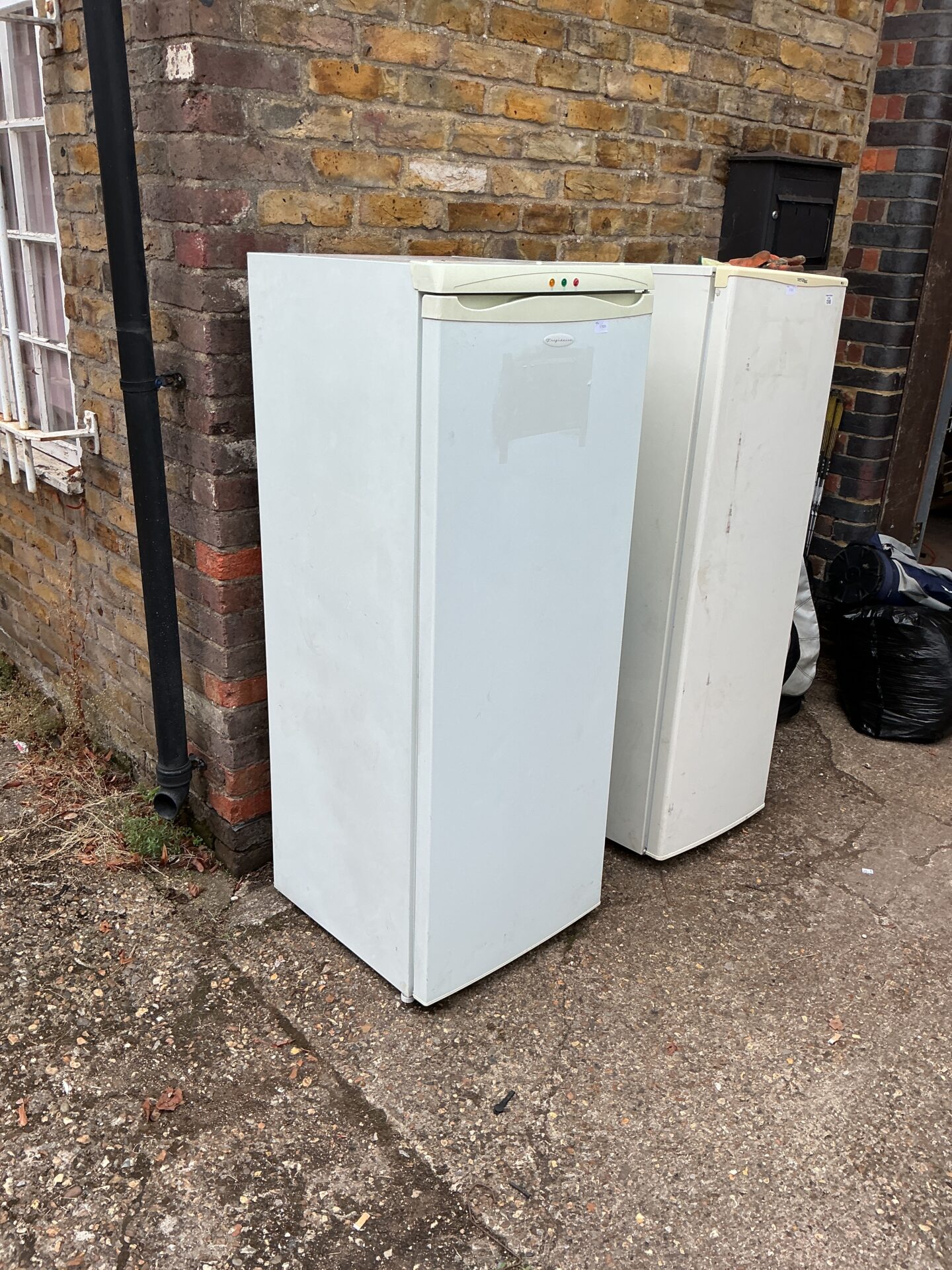 This freezer appears to be in used condition, showing signs of wear consistent with age and use. While it may benefit from a thorough cleaning, it remains a functional appliance. It could be a great addition for someone needing extra freezer space or a collector of vintage kitchen appliances.