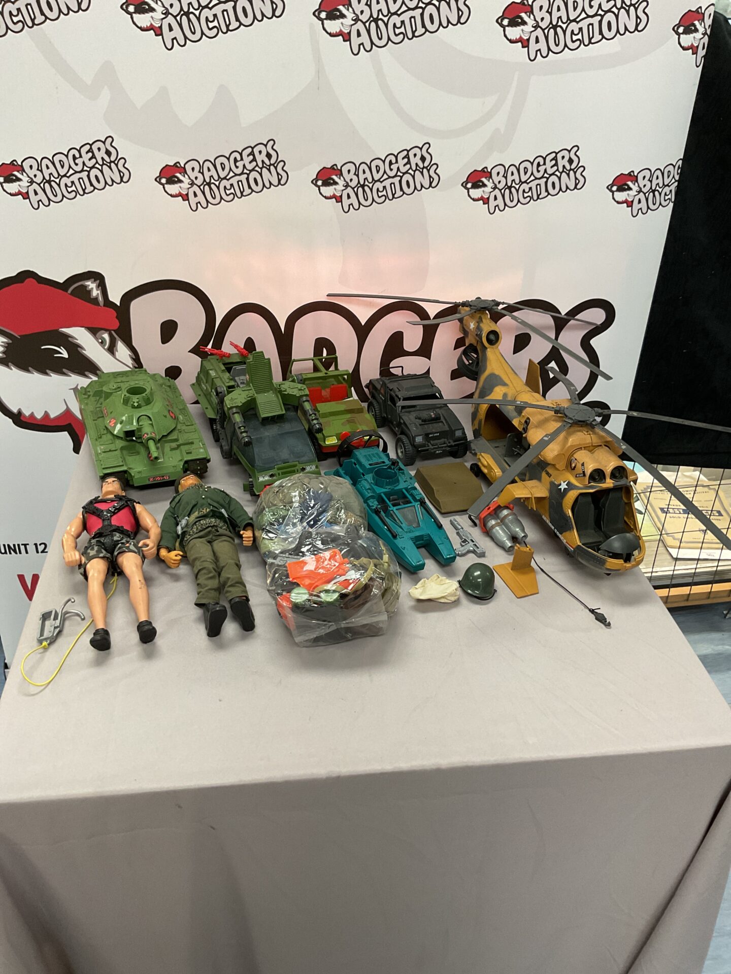 This lot features a collection of vintage G.I. Joe and Action Man action figures and accessories. The figures represent a variety of military specialities and eras, offering a diverse range for collectors or enthusiasts. The collection includes various accessories, enhancing playability and display options.