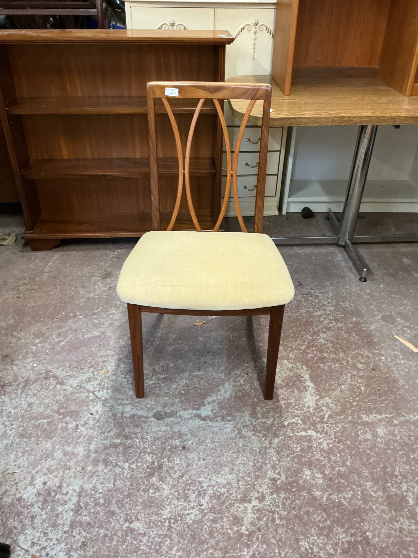 This is a classic dining chair from the renowned G Plan furniture range. Featuring a beautifully crafted beech wood frame and a contoured seat, this chair exemplifies mid-century modern design. The elegant lines and sturdy construction make it a timeless piece, suitable for both contemporary and vintage interiors.