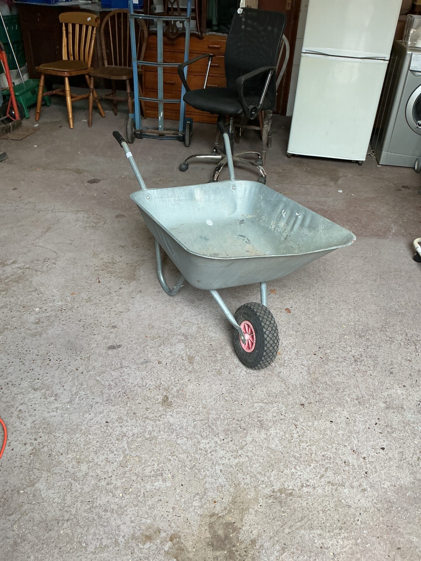 This wheelbarrow is in used condition, showing signs of wear and tear consistent with outdoor use. While it may have some surface rust or minor dents, it remains structurally sound and fully functional. It’s a practical tool for everyday gardening, but also holds appeal for collectors of vintage garden equipment or those seeking a durable, long-lasting wheelbarrow.
