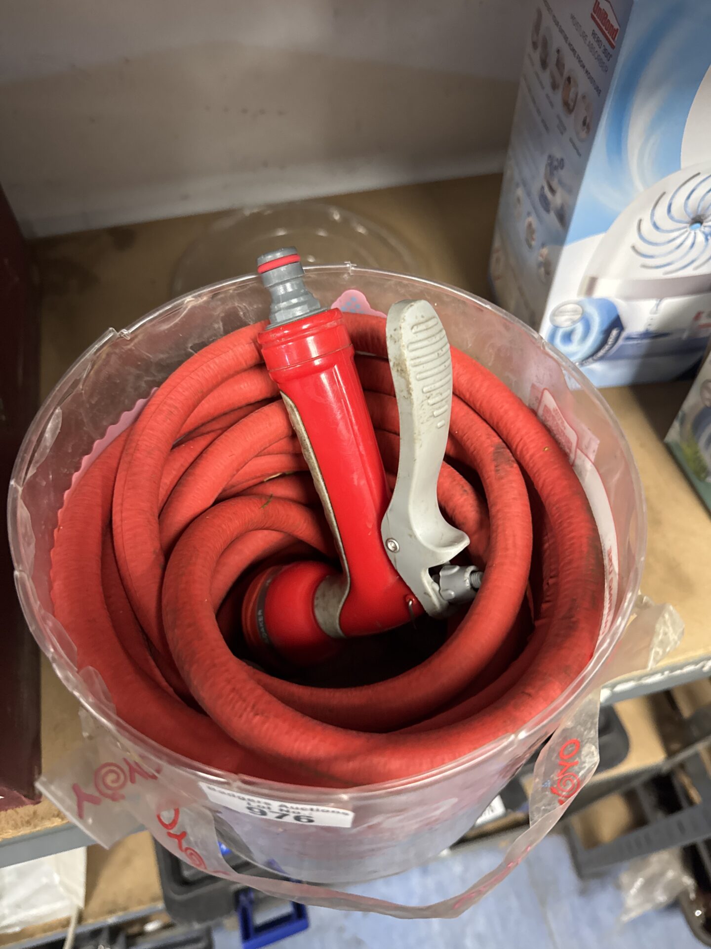 The hosepipe shows signs of previous use and may benefit from cleaning. It is offered as viewed, with no guarantees regarding its full functionality or lifespan. This item may appeal to gardeners, collectors of vintage garden tools, or those seeking a functional hose for outdoor use.
