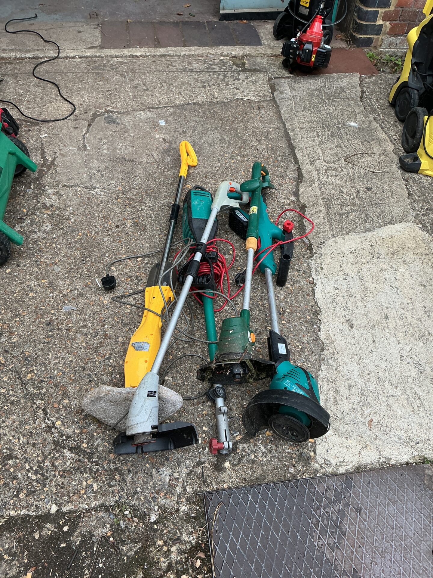 This lot comprises a selection of electric garden trimmers, ideal for those seeking spares or undertaking repair projects. The trimmers vary in style and design, offering a diverse range of components and mechanisms. While the exact models and specifications differ, they all share the common purpose of maintaining gardens and outdoor spaces.