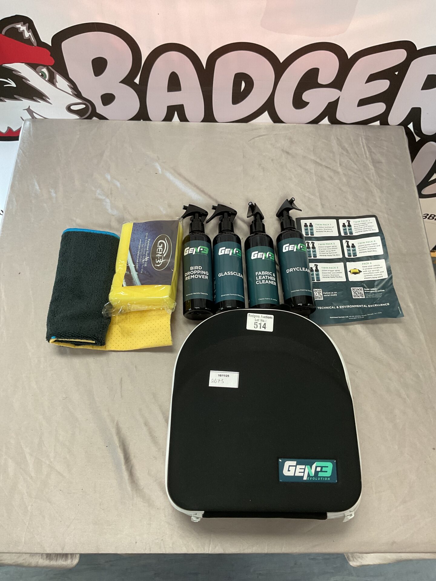This collection comprises three Gen-3 detailing products: a leather cleaner, a glass cleaner, and a fabric protector. These products are designed for maintaining and protecting various surfaces, likely within an automotive or household context. The packaging suggests a focus on advanced formulation and care for delicate materials.
