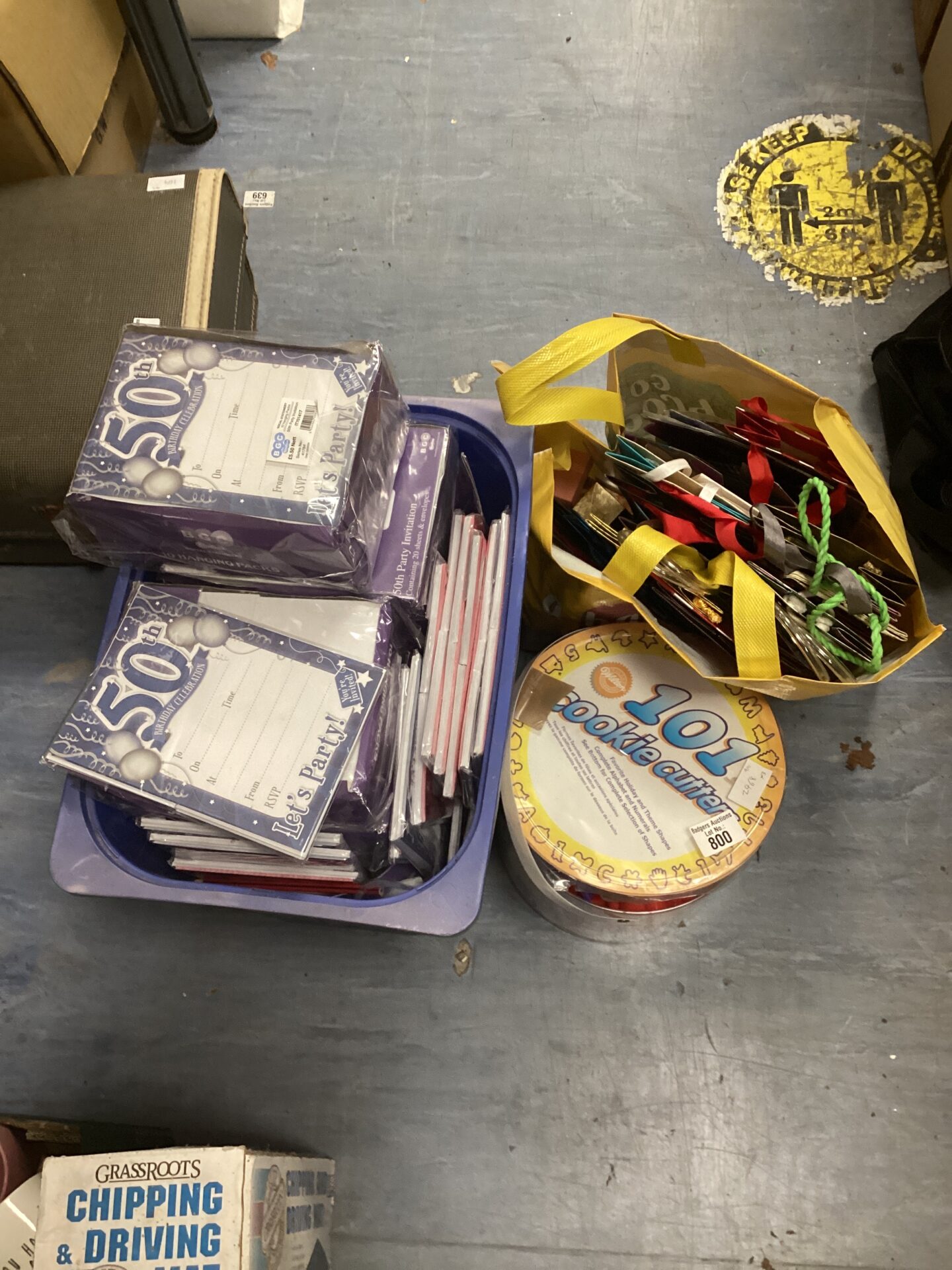 The items within this lot are in new, unused condition, suggesting they have been carefully stored. This makes it appealing to collectors of vintage party supplies or those seeking pristine materials for upcoming events. The variety of cookie cutters and the inclusion of gift bags and cards offer a comprehensive set for celebrations, making it a valuable addition to any party planning collection.