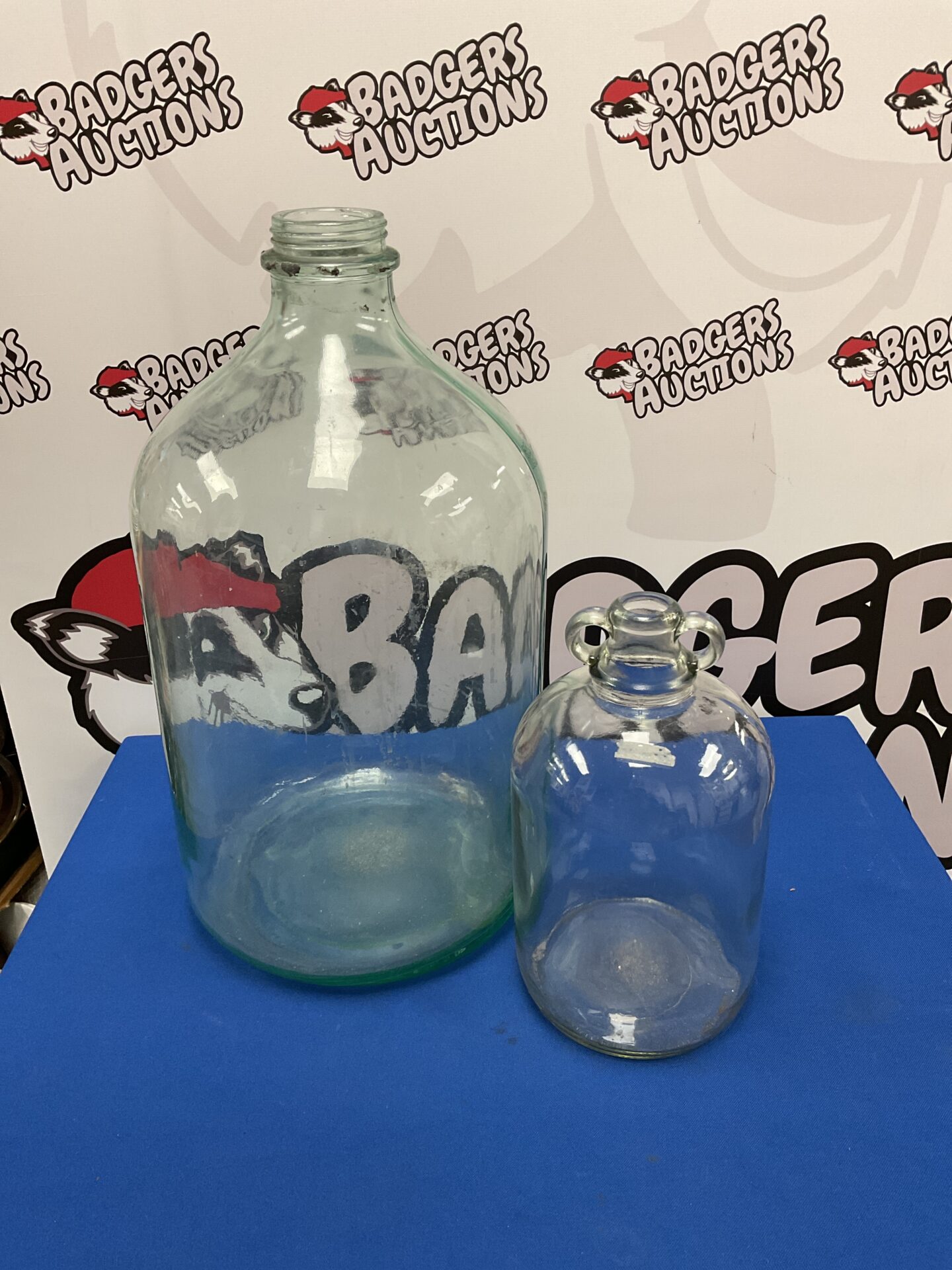 This demijohn shows signs of age and use, with potential for minor imperfections consistent with its vintage. While not assessed for airtightness, it presents as a visually interesting piece for collectors of antique glass or those interested in historical brewing/winemaking equipment. Its size and unique form make it a statement piece for display or a potential repurposing project.