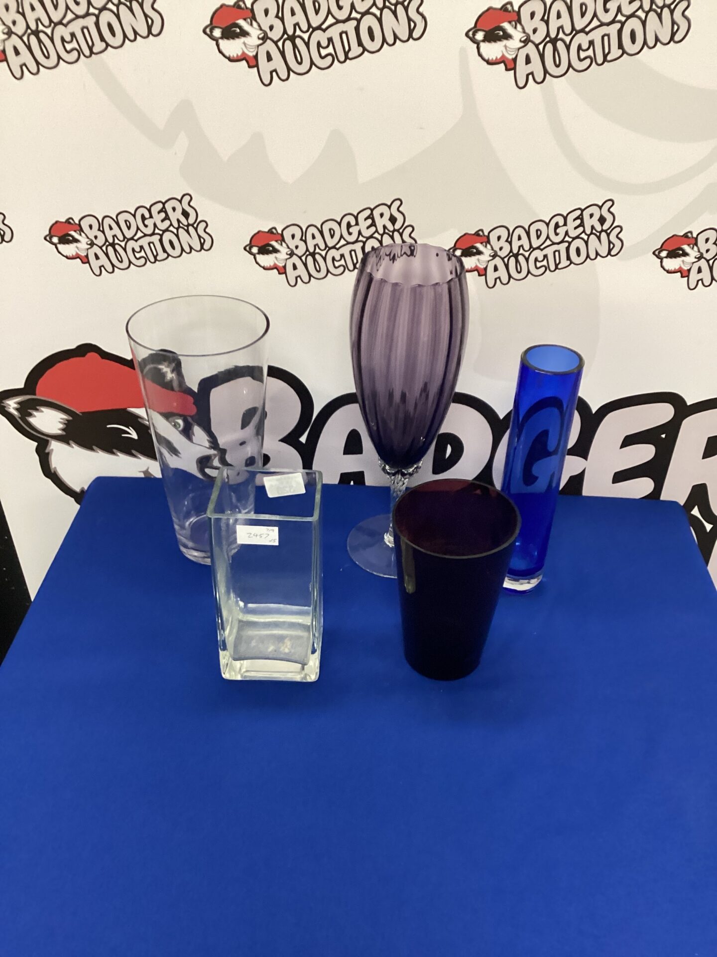 This lot comprises a selection of decorative glass vases, each offering a unique aesthetic. The vases showcase a variety of colours and shapes, suitable for displaying floral arrangements or as standalone decorative pieces. Their designs range from classic to contemporary, making them versatile additions to any home decor style.