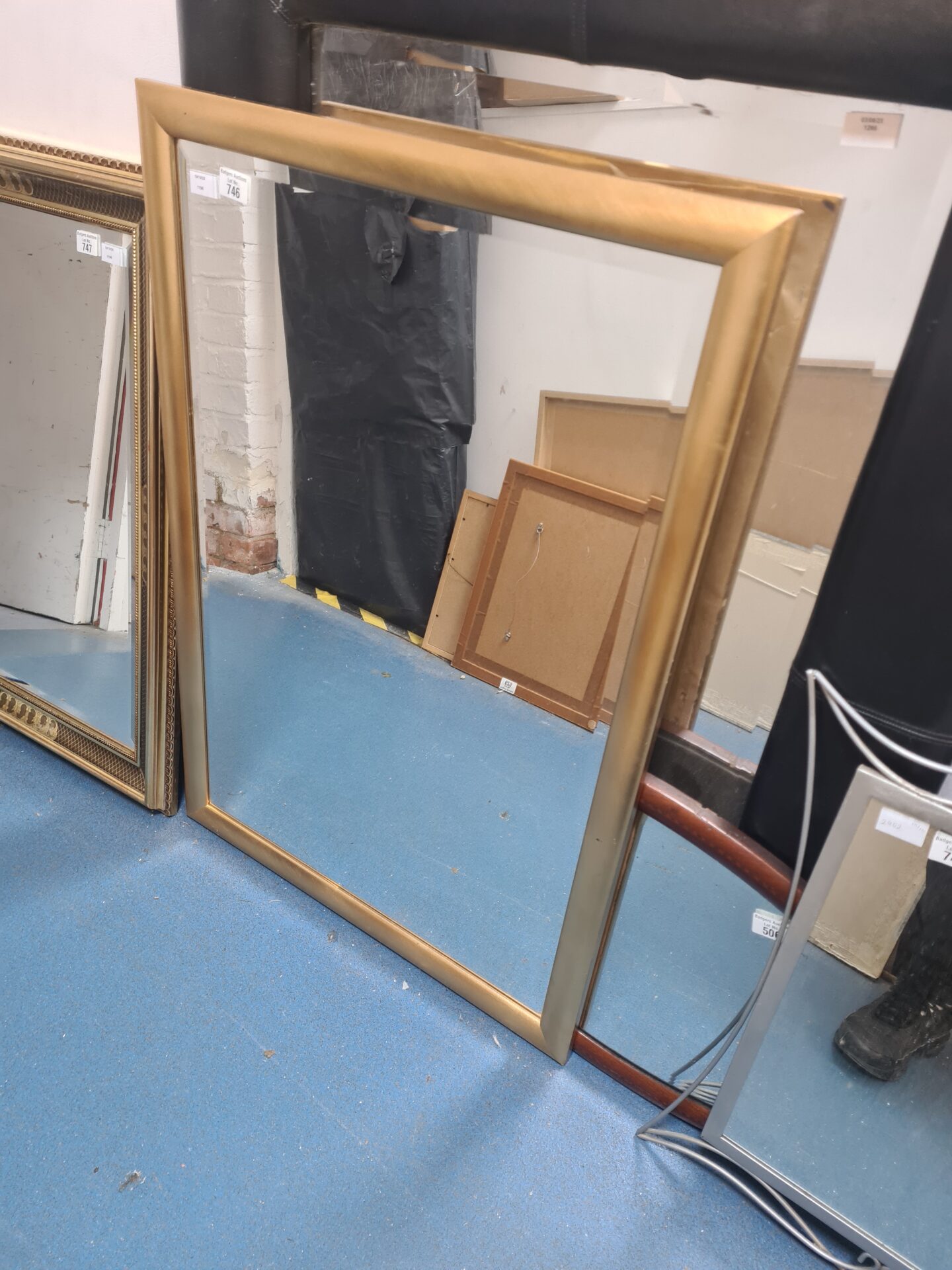 This is a beautiful gold framed mirror, offering a touch of elegance to any room. The frame exhibits a classic design, suggesting a vintage or antique origin. Its generous size makes it a statement piece, suitable for a hallway, bedroom, or living area. The mirror itself is clear and reflects light well, enhancing the brightness of the space.