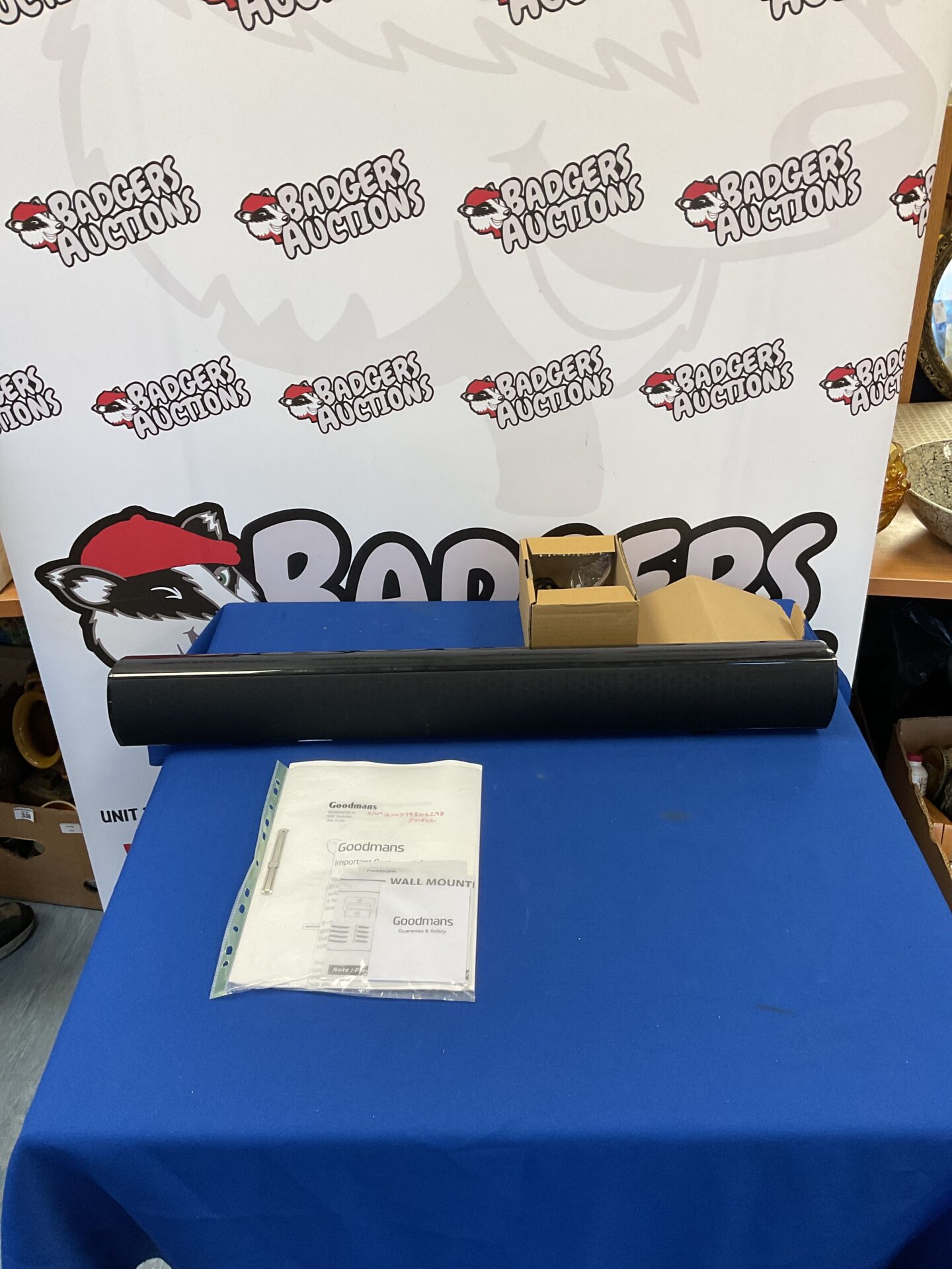 This is a Goodmans GDSB04BT50X Bluetooth soundbar, designed to enhance your home audio experience. It features wireless Bluetooth connectivity for easy pairing with your devices, and is intended to provide a more immersive sound experience than standard television speakers. The sleek design allows for versatile placement within a home entertainment setup.