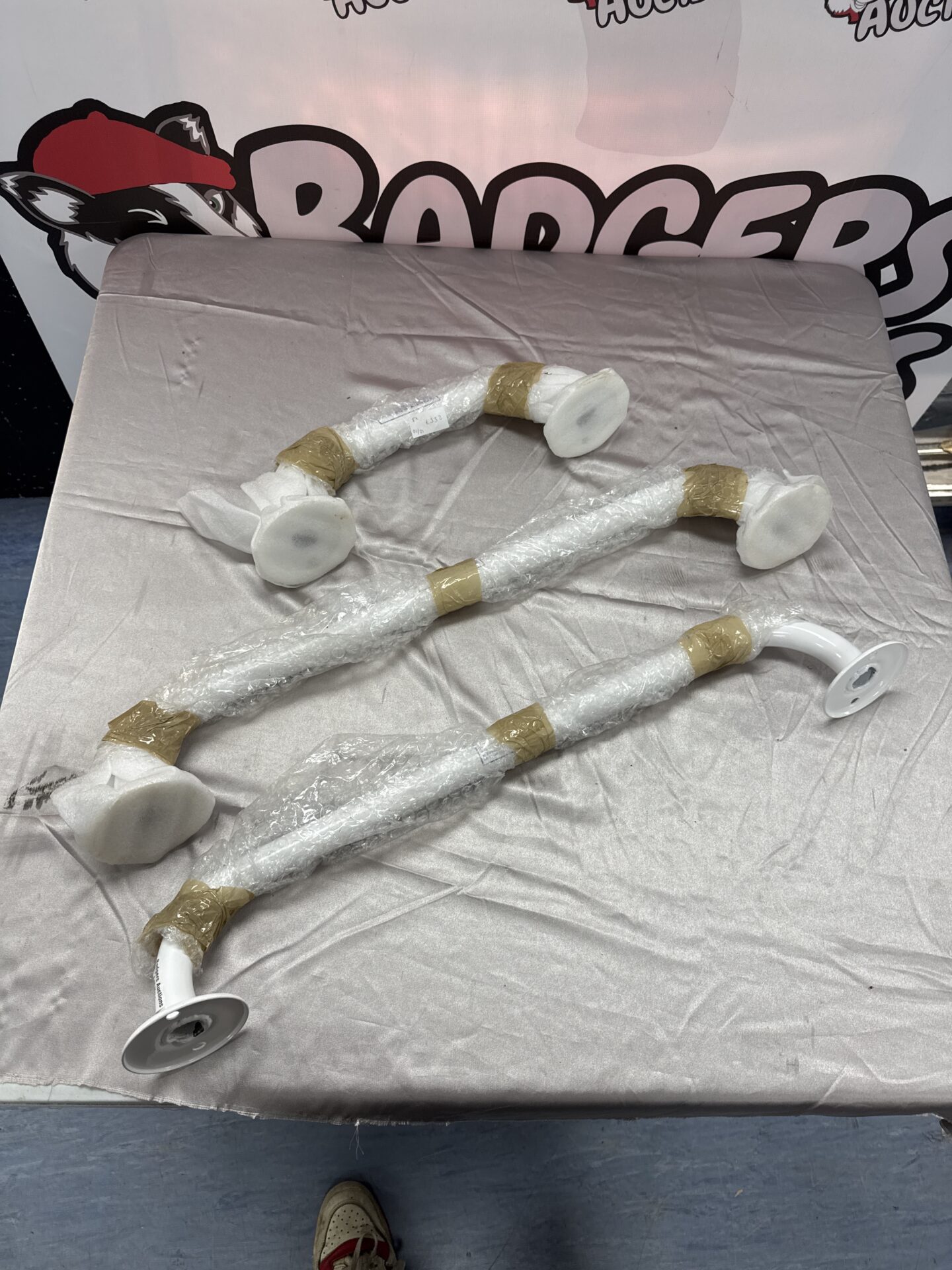 This is a set of three new grab handles, likely intended for marine or safety applications. The set includes handles of approximately 2ft and 1ft in length, offering versatility for various mounting locations. These handles appear to be constructed from a durable plastic material, designed for a secure grip and long-lasting performance.