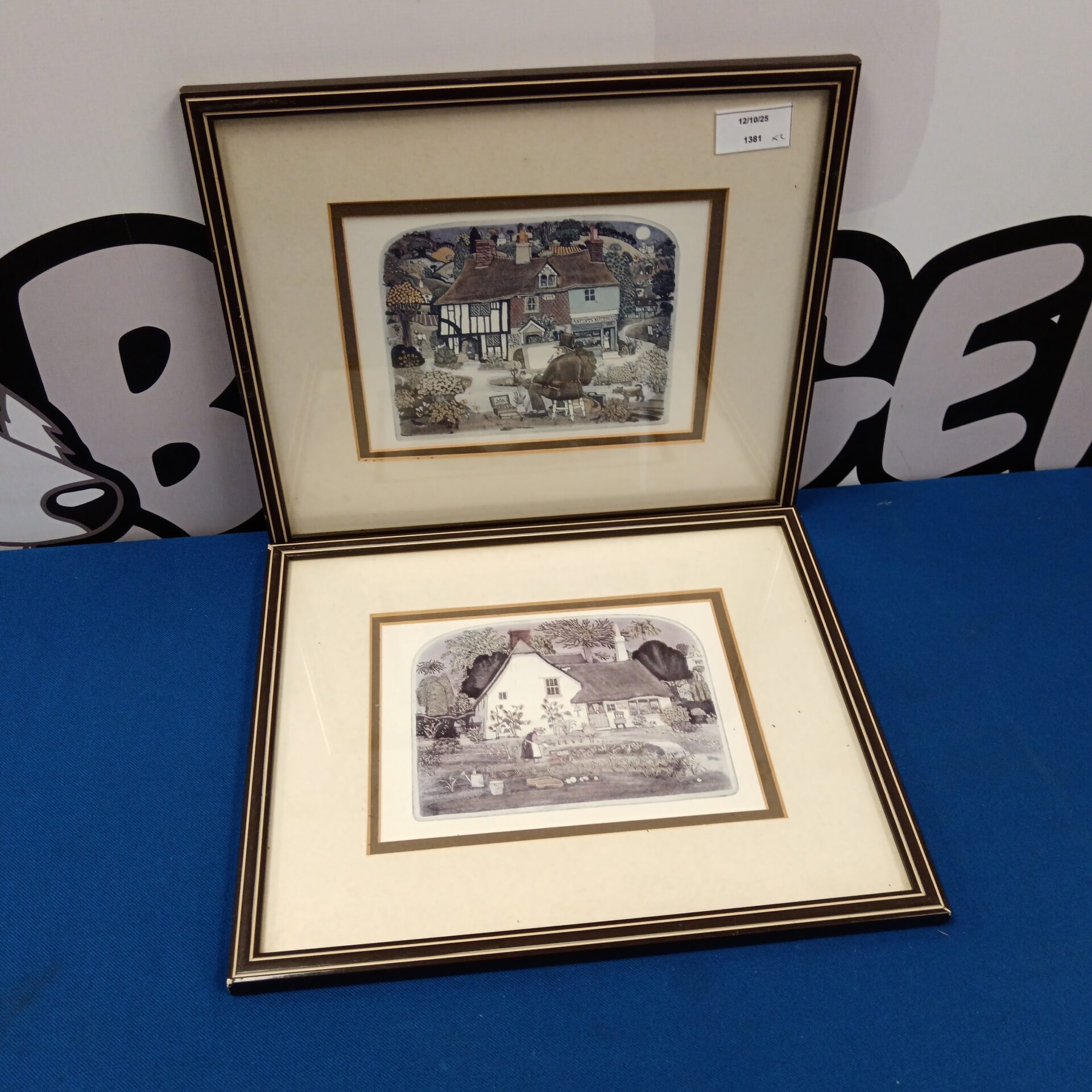 This is a delightful pair of humorous prints by Graham Clark, depicting charming cottage scenes at night. The prints showcase Clark’s signature style, known for its whimsical detail and playful depiction of rural life. These prints are perfect for adding a touch of countryside charm and lightheartedness to any room.