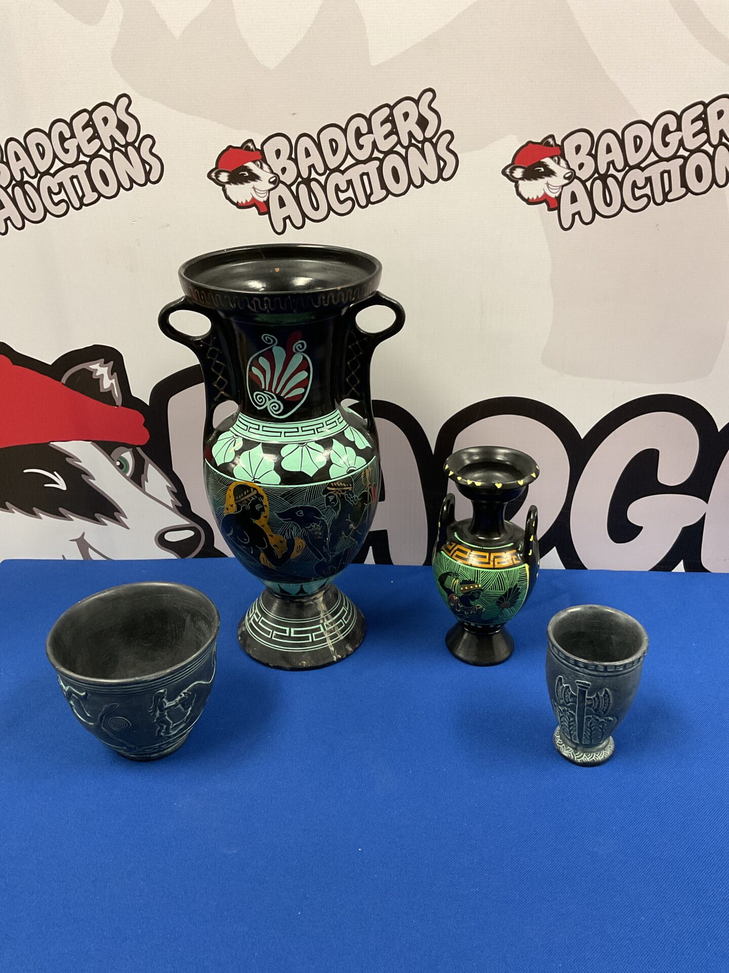 This vase shows signs of age and wear consistent with its antiquity. While there may be minor imperfections or surface wear, these contribute to its character and authenticity. This piece would be of interest to collectors of ancient artifacts, enthusiasts of Greek history, or those seeking a unique and decorative piece for their home.