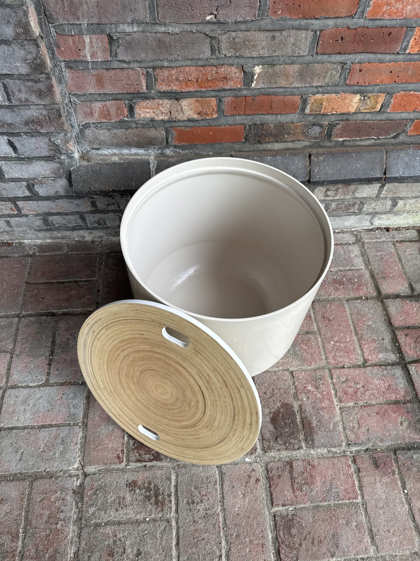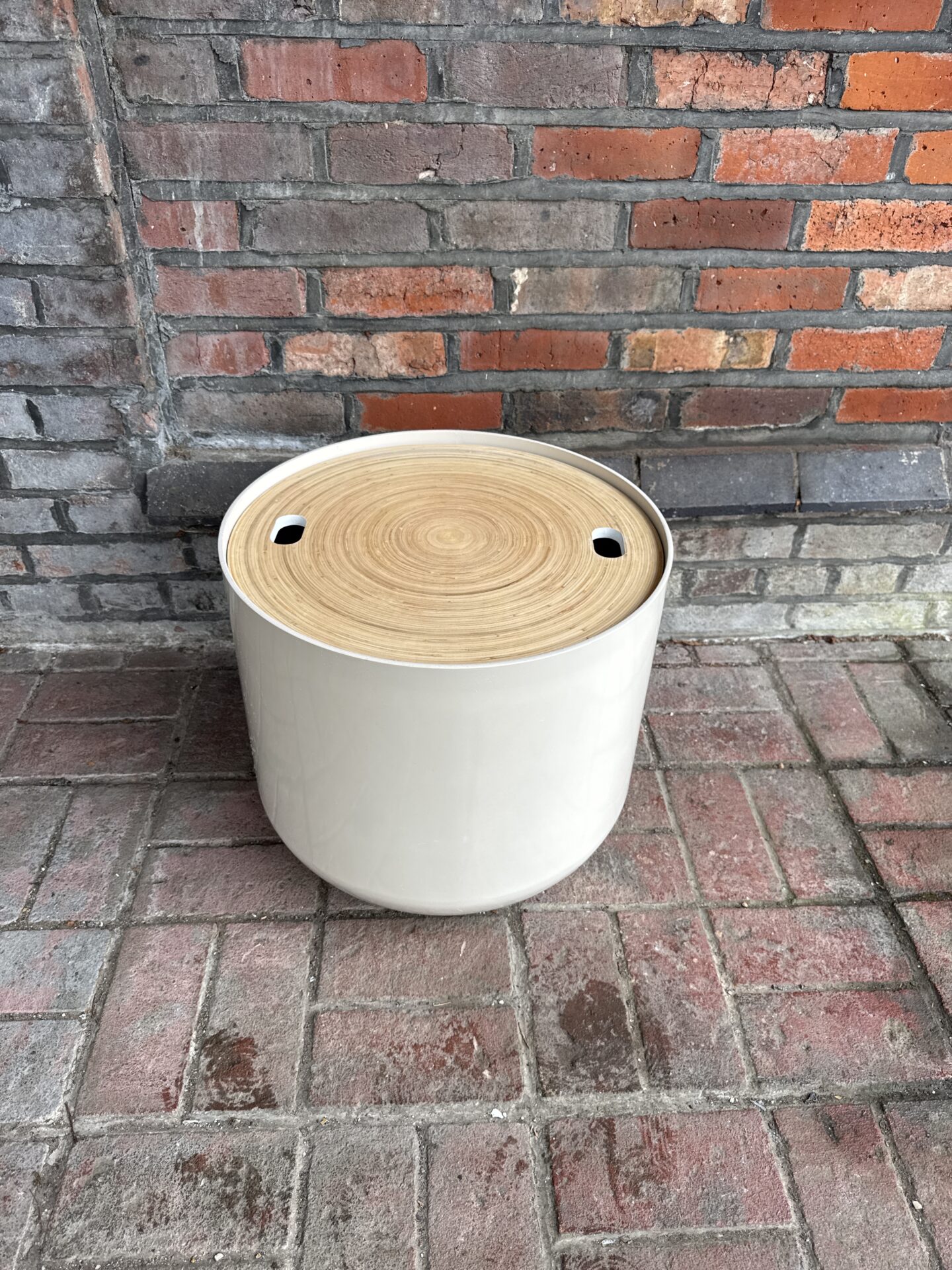 Aaf Habitat Drum Style Side Table With Storage Inside Lid Reversible White Or Grain Effect 18.75” Diameter Approx