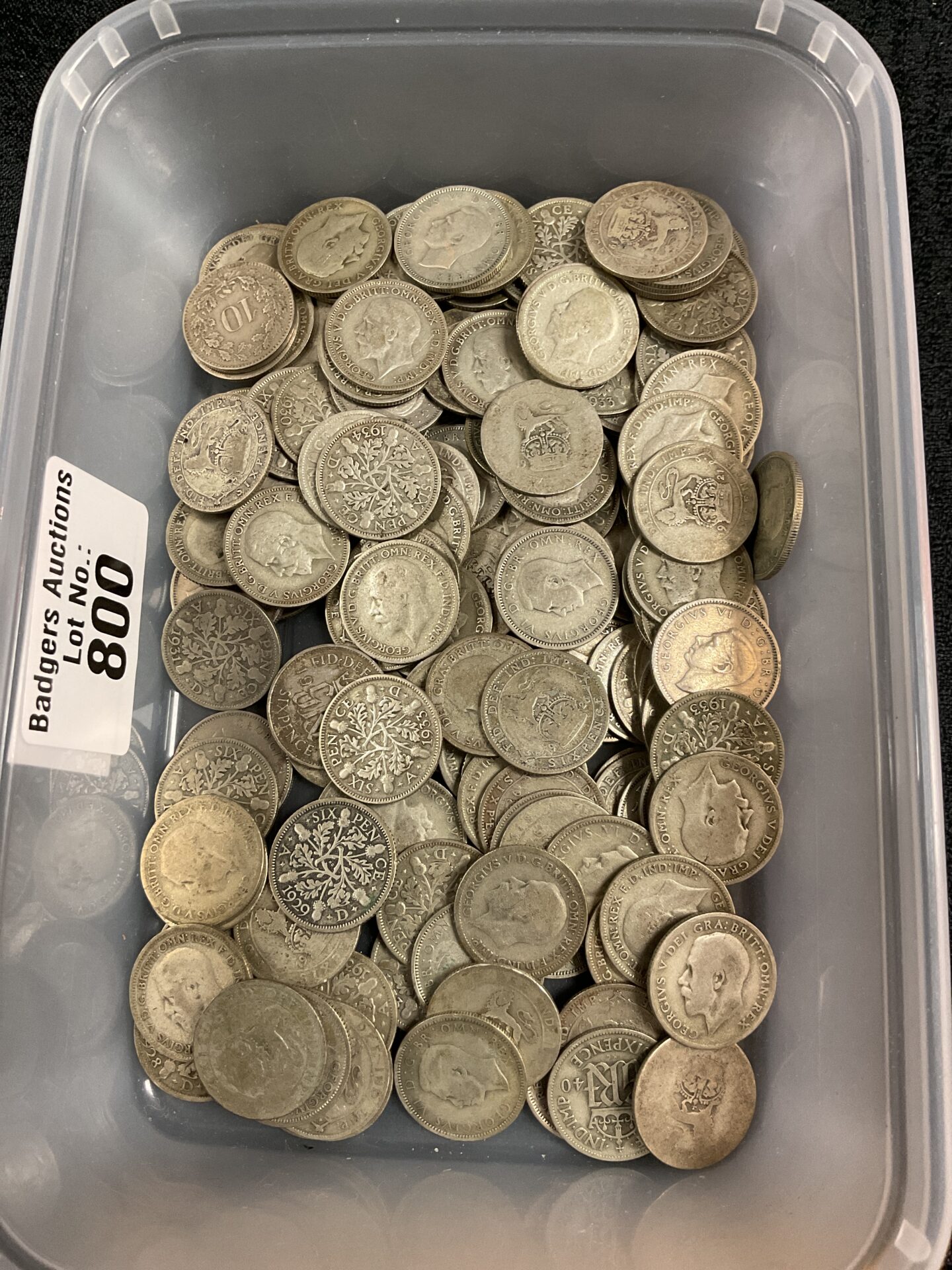 The coins appear to be in varied condition, showing signs of circulation and age. While not necessarily in pristine condition, this lot presents an opportunity for collectors interested in British numismatics or silver coinage. The weight of the lot is 422g, offering a substantial amount of silver content for the collector or investor.