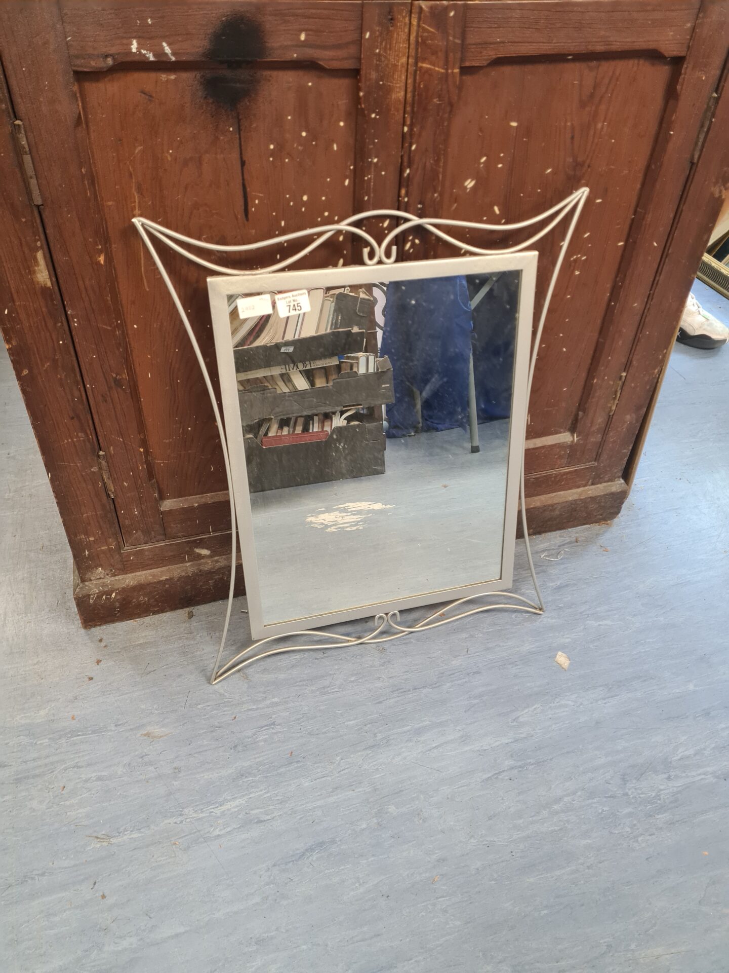 This is a charming vintage hall mirror, featuring a decorative metal frame. The mirror itself is in good shape, offering a clear reflection. The metal frame adds a touch of elegance and character, making it a lovely addition to any hallway or entryway.