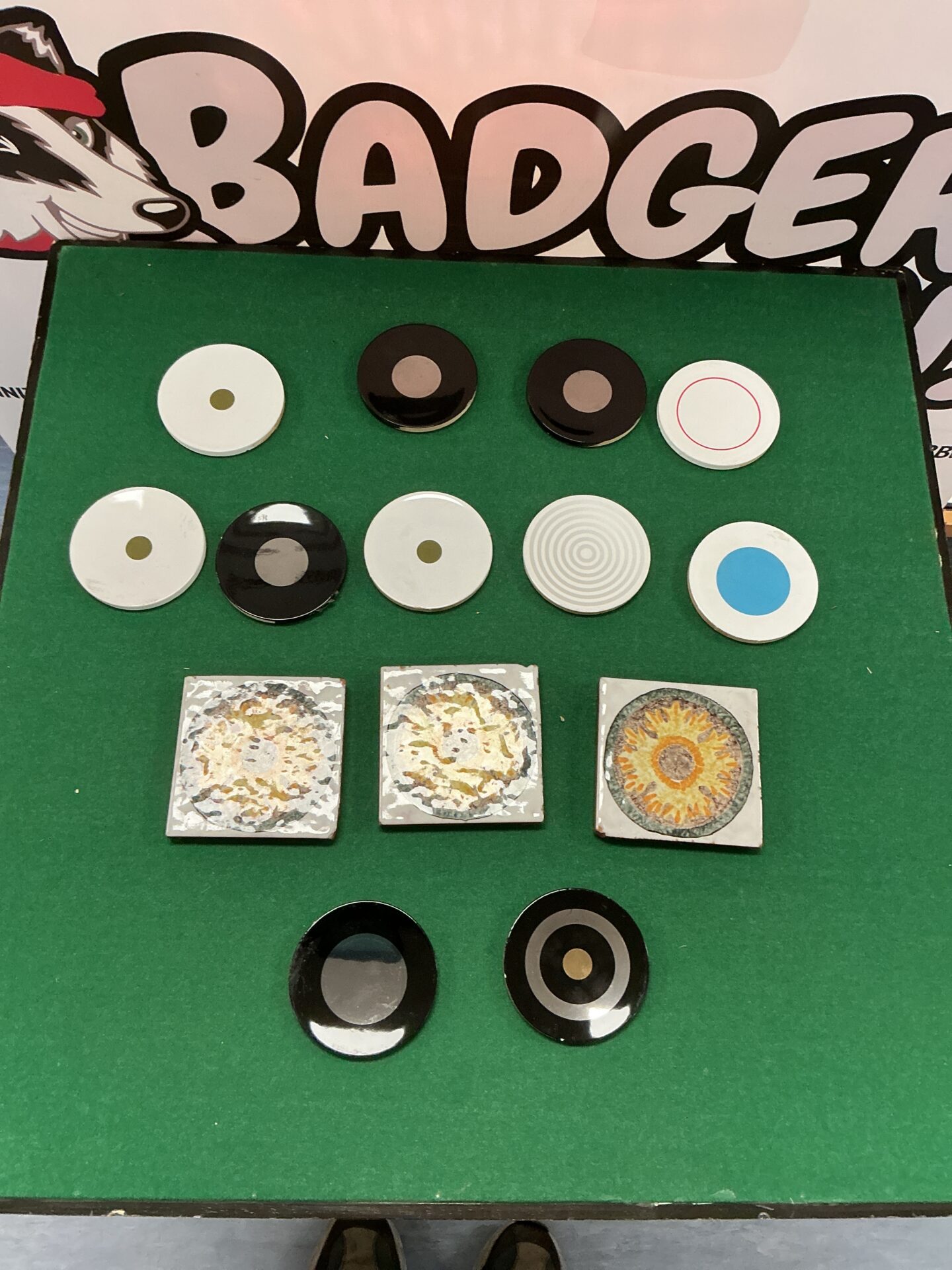 These coasters appear to be in good condition, displaying the expected characteristics of handmade items – slight variations and imperfections that contribute to their charm. They would appeal to collectors of pottery, ceramic art, or those seeking unique home décor items. Their handmade nature and colourful designs make them a distinctive addition to any home, offering both practicality and artistic flair.