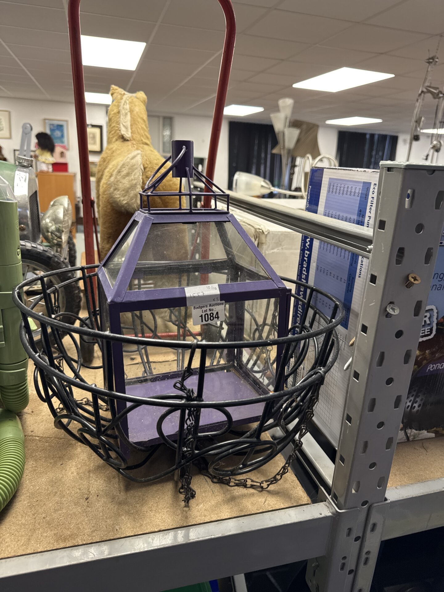 This charming set features two wire-framed hanging baskets paired with a decorative hanging lantern. The baskets are constructed from sturdy wire, providing a rustic and airy aesthetic, ideal for displaying trailing plants or creating a whimsical garden display. The lantern, with its classic design, adds a warm and inviting glow when illuminated, enhancing any outdoor or indoor space.