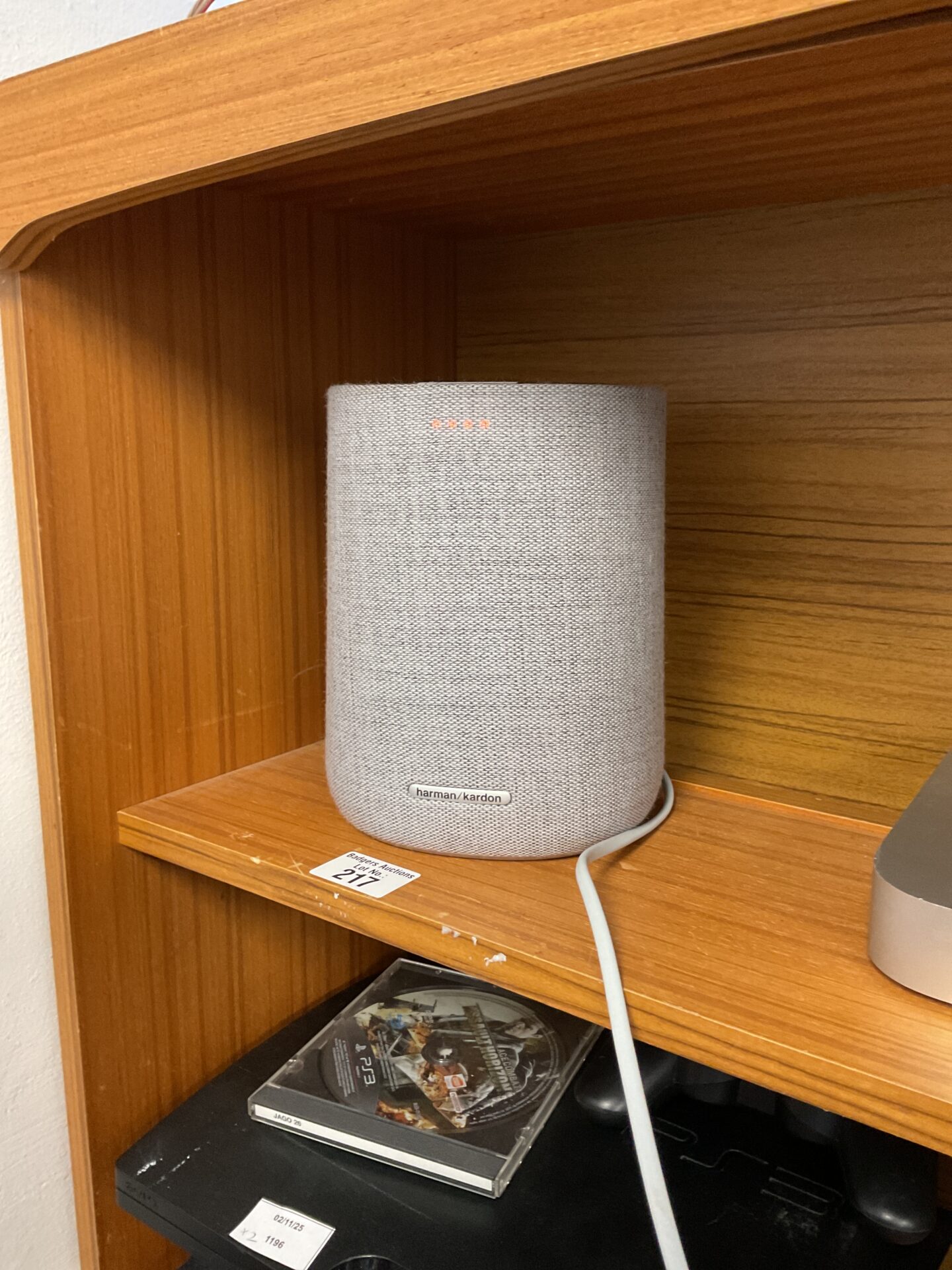 This Harman Kardon wireless speaker offers a sleek design and quality sound for modern audio enjoyment. It connects via Bluetooth for easy wireless streaming. A great addition to any home audio setup or for portable use.