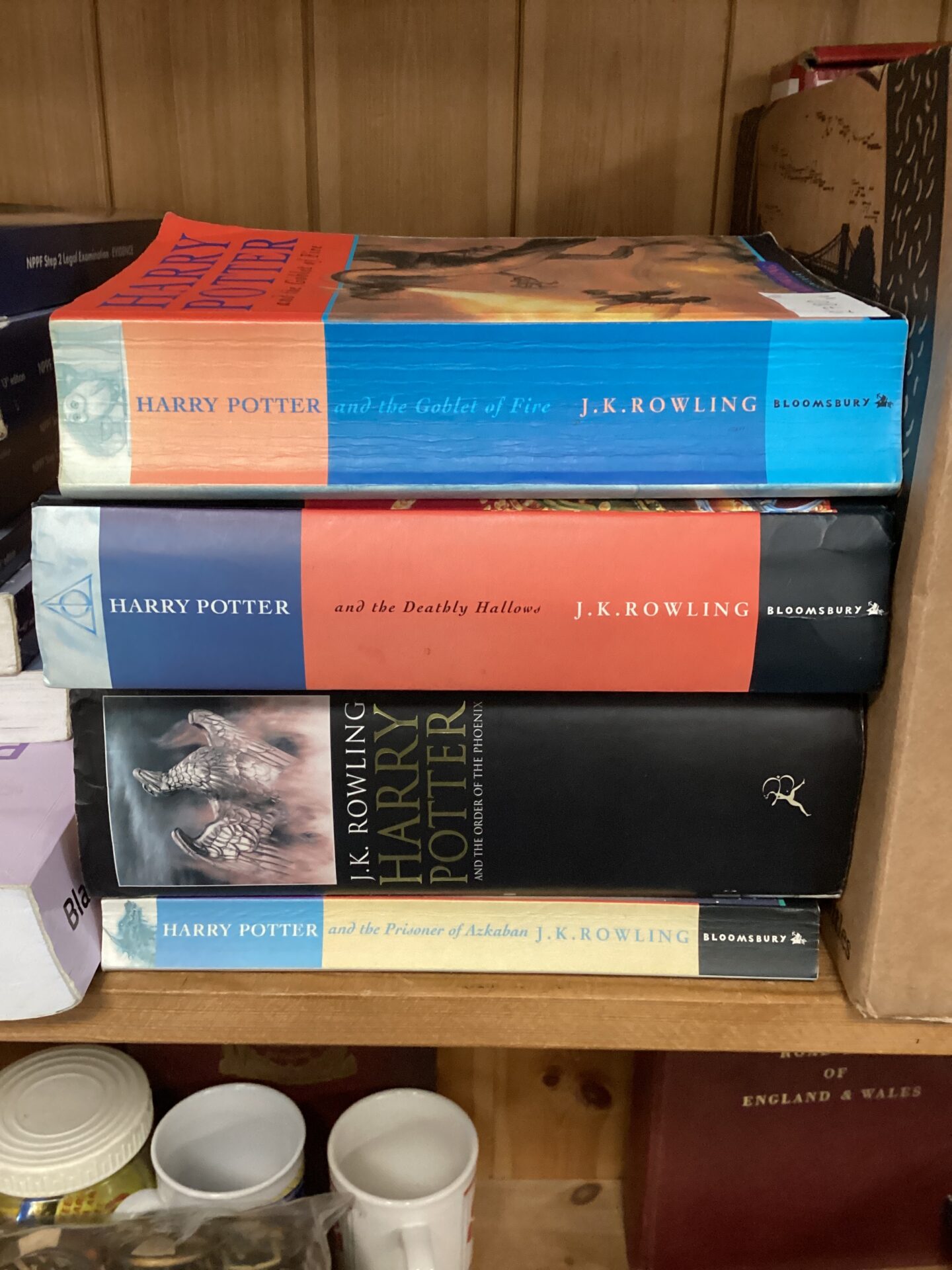This lot comprises a collection of Harry Potter books by J.K. Rowling. The books appear to be a mix of first and later editions, offering a range of titles from the beloved series. The collection presents a colourful display of covers, indicative of the magical world within.